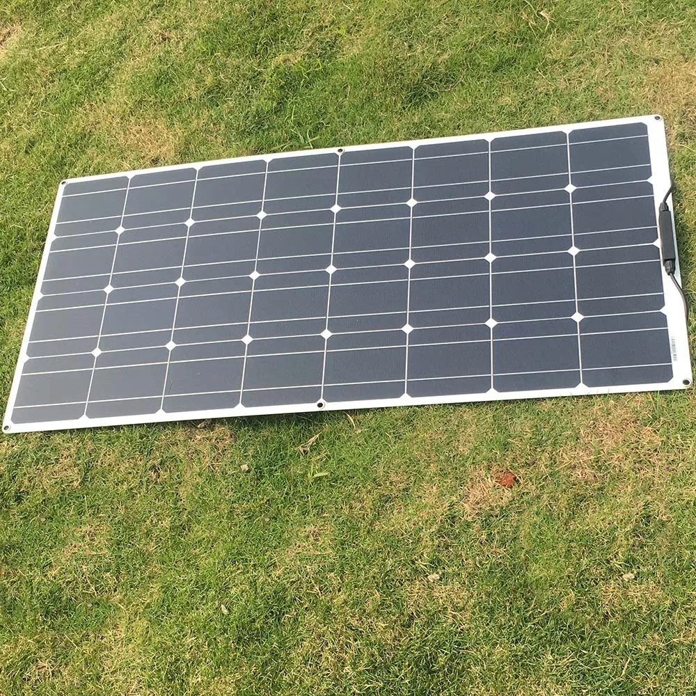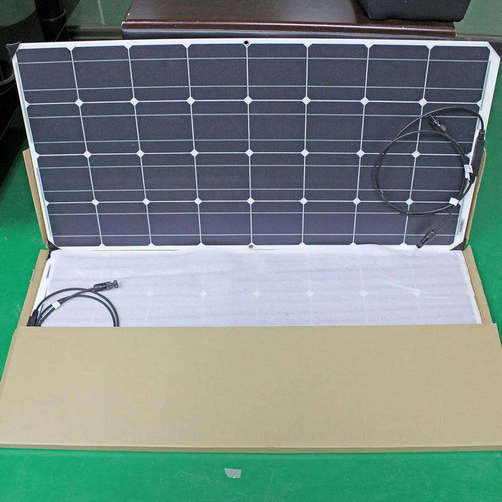 Изготовлено из монокристаллической солнечной батареи, 16 в 100 Вт Гибкая солнечная панель имеет легкий вес, всего 2 кг, сгибается до 30 градусов для изогнутой поверхности, с водонепроницаемым разъемом, просто подключите и играйте. Гибкая солнечная панель также может использоваться для различных применений, включая питание на лодке, фургоне, гольф-машине, трицикл, крышу палатки, даже если вы повесили на окно, чтобы включить свет и другие приложения постоянного тока. 100 Вт солнечные панели можно заряжать портативным зарядным устройством на 12V и 24V гелевый Аккумулятор, свинцово-кислотных аккумуляторов, потоп, батареи или зарядного устройства 3,7 V, 6V, литиевая батарея 9 В и другие устройства постоянного тока с регулятором.