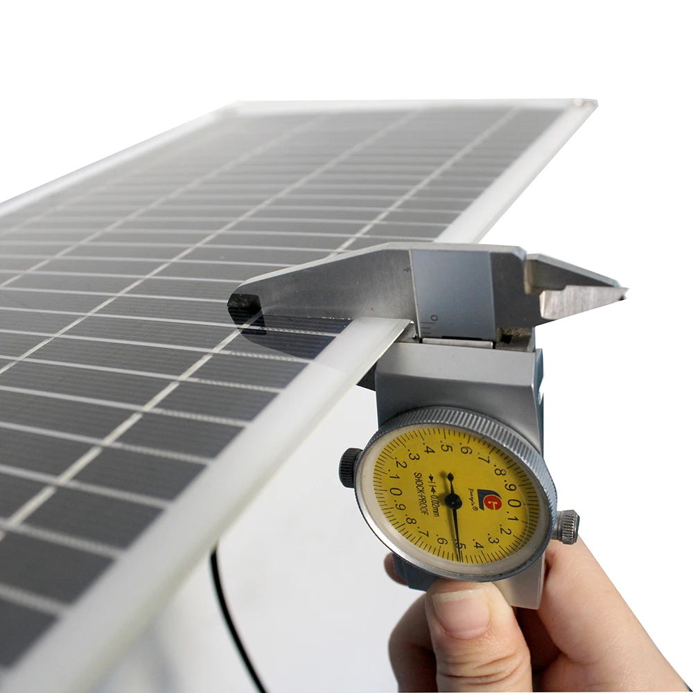 Почти не заметная, легкая панель 100 Вт, уложенная на плоской подошве, составляет всего десятую от сантиметра! Примерно на 95% тоньше, чем его жесткий аналог, эта панель идеально подходит для stealthy солнечной установки.