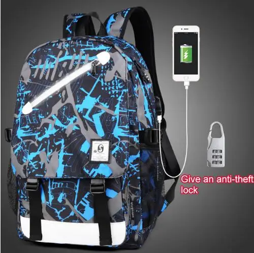 Популярный светящийся школьные ранцы для мальчиков рюкзак для студентов, рюкзак для 15-17 дюймов с USB-зарядным портом и замком, школьная сумка с защитой от краж