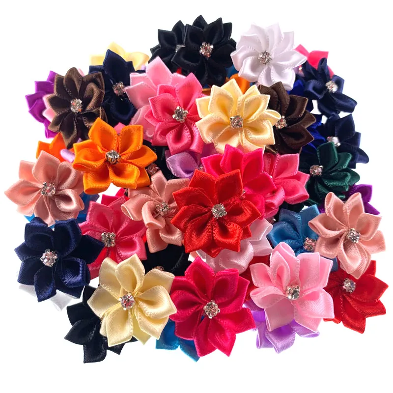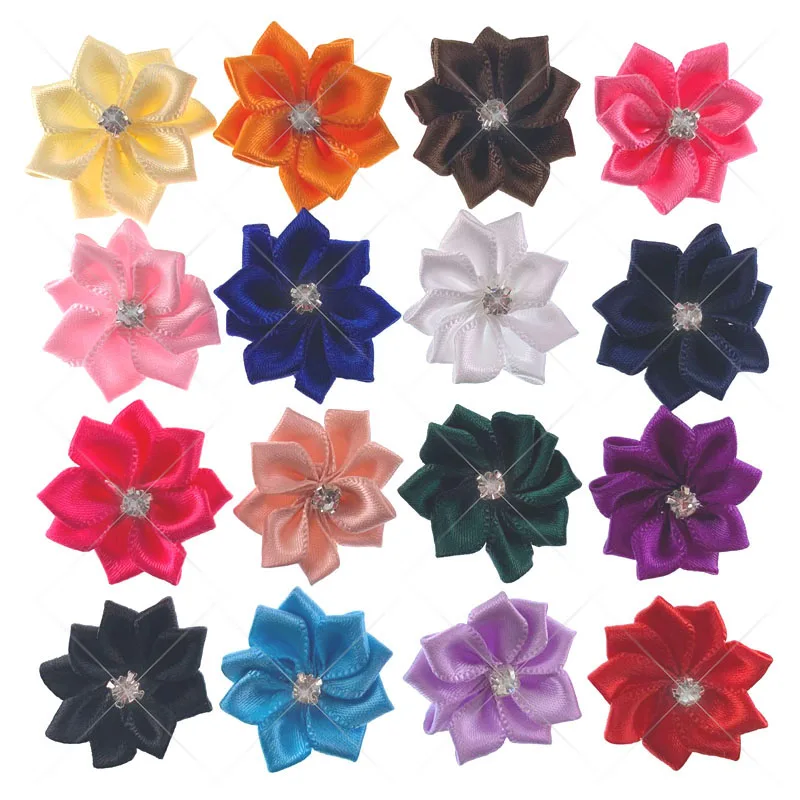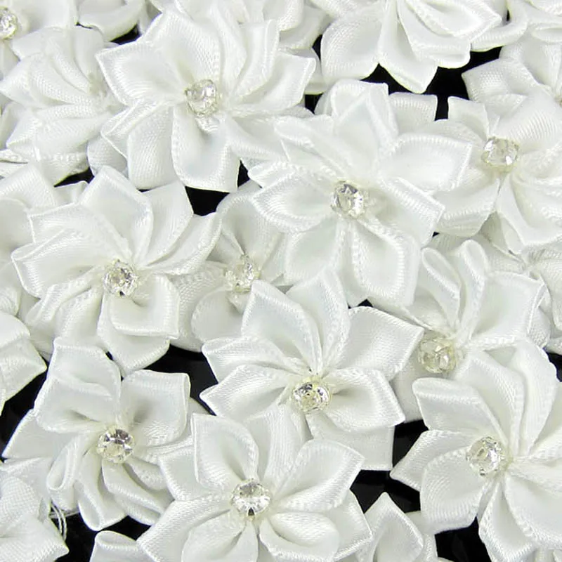 Цветы белые, 1 дюйм, атласная лента ручной работы, 20 шт., аппликации для стразы, цветок для рукоделия, шитья, украшения для свадьбы, скрапбукинга, 2,8 см