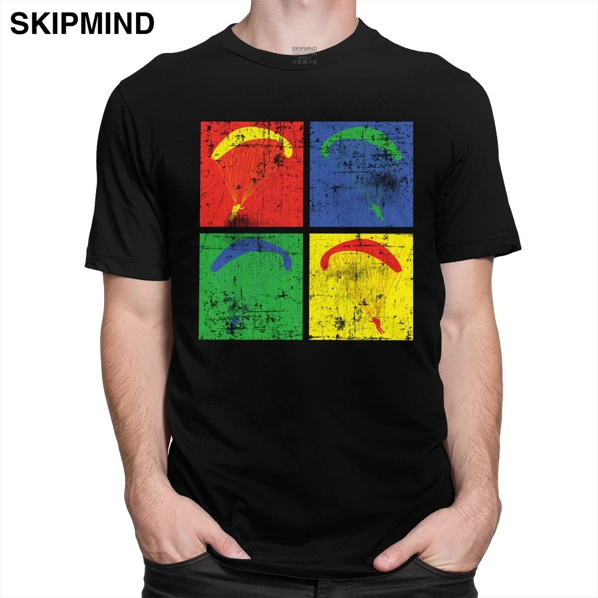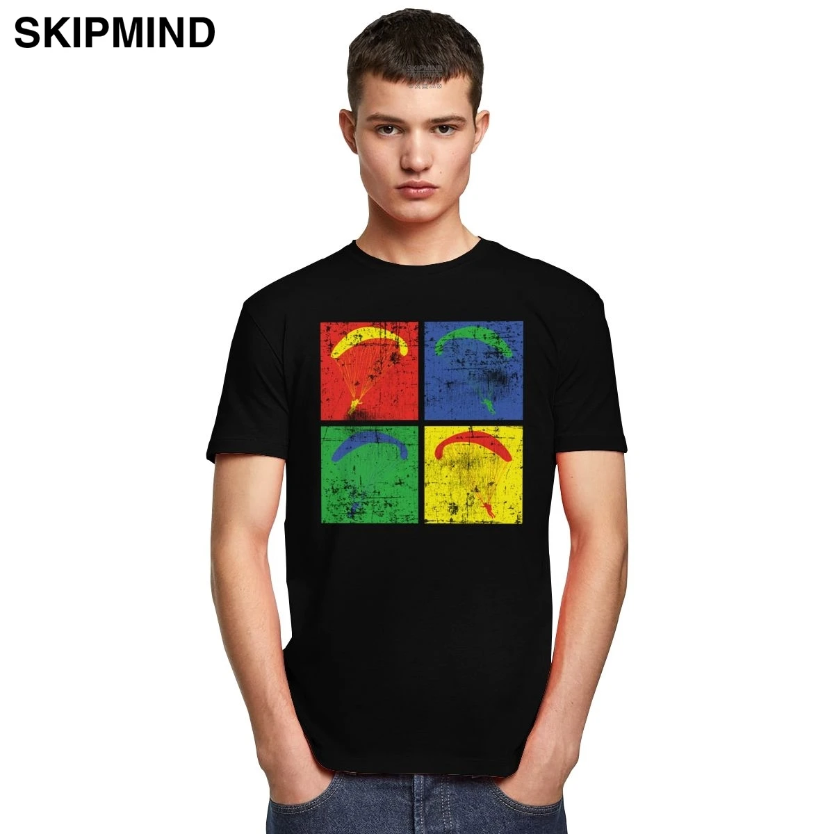 Мужская Винтажная Футболка парашютный стиль, облегающая футболка из чистого хлопка с коротким рукавом и круглым вырезом, футболка с надписью Paraglider