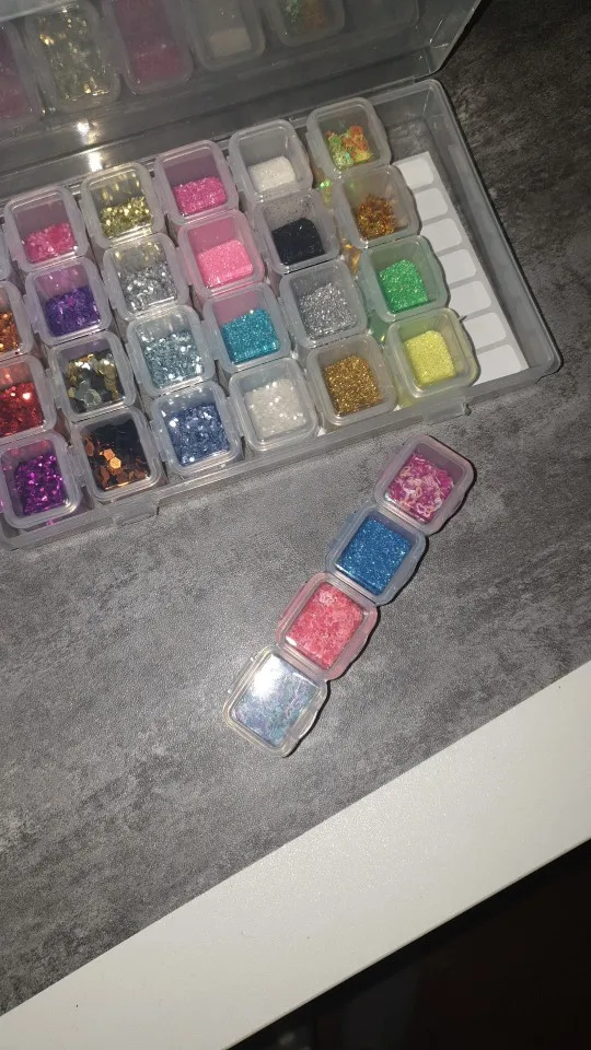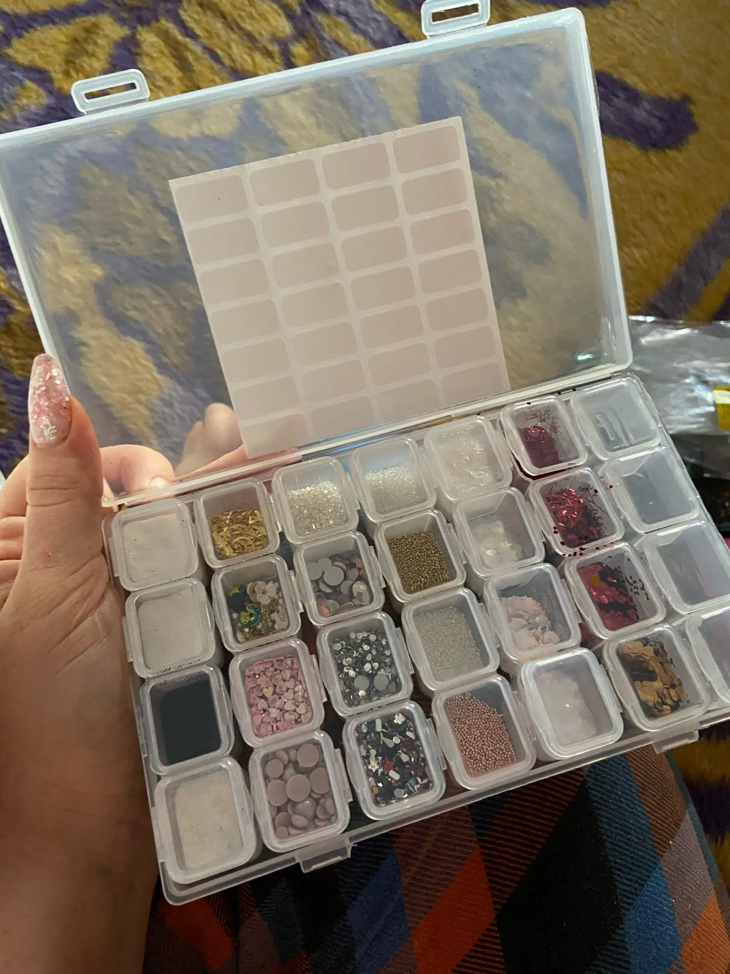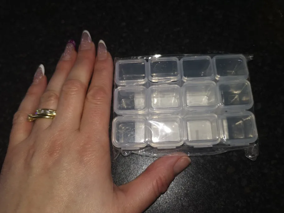 Контейнер пришёл через 2 недели после оплаты. Ставлю 4 звезды, неплотно закрываются. Надеюсь, стразы не рассыпятся.
