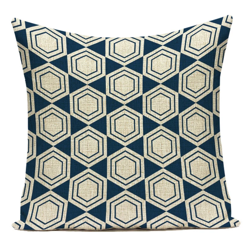 Наволочка для подушки с геометрическим рисунком, синие декоративные...