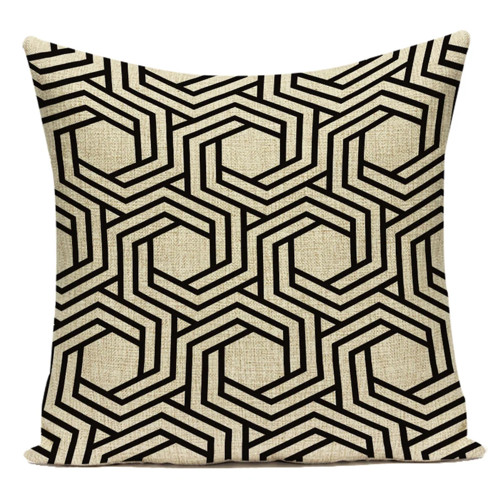 Новые простые геометрические наволочки для подушек, черные льняные ...