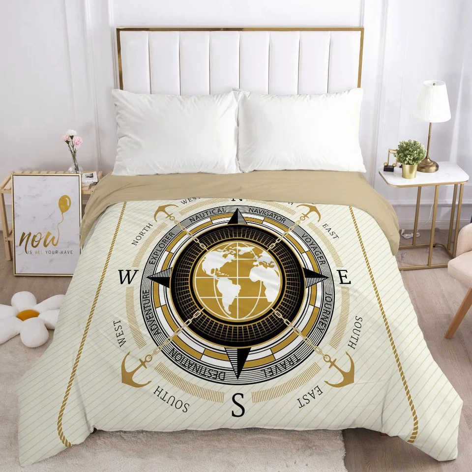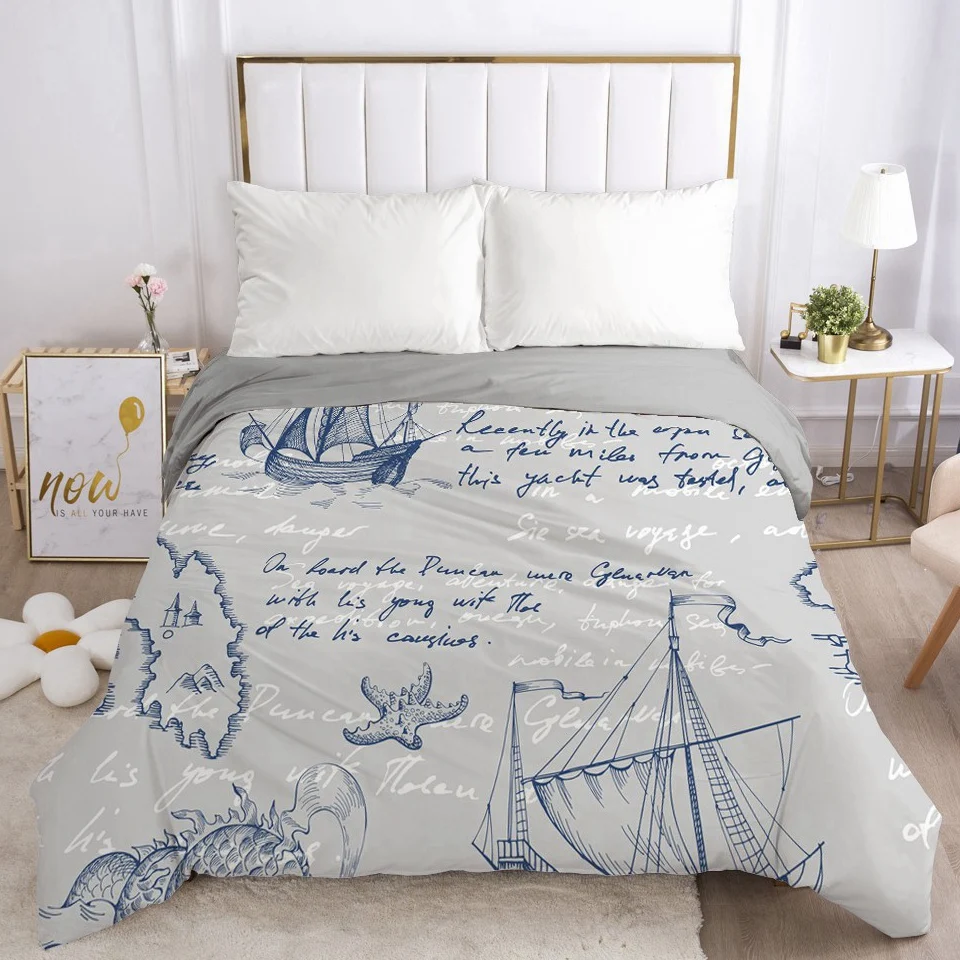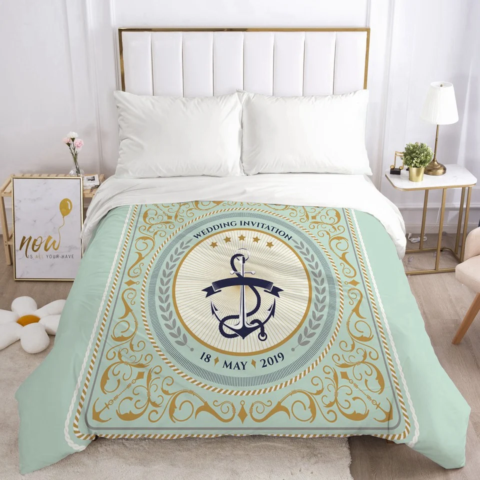 1 шт., пододеяльник с 3D принтом в синюю и белую полоску с якорем, ...