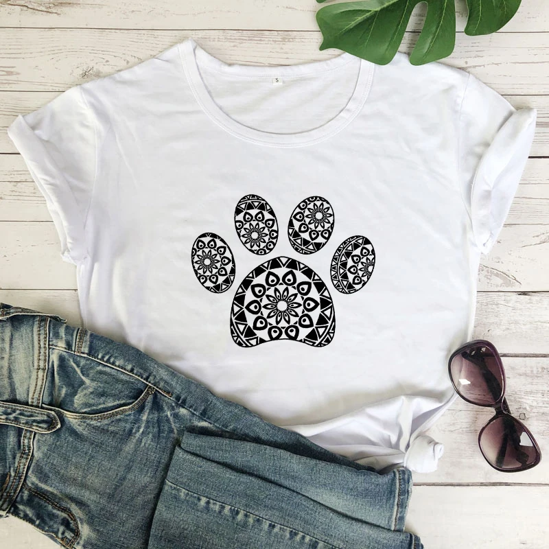 Футболка женская в стиле бохо, милая рубашка с принтом Собачья лапа, топ с принтом мандалы, кошки, лапы, летняя с коротким рукавом, подарок для мамы