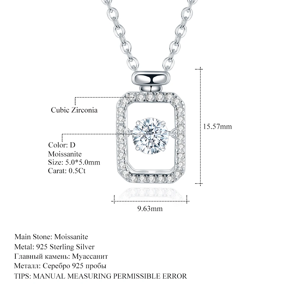 Женский прямоугольный кулон из серебра 925 пробы, с муассанитом 5 мм