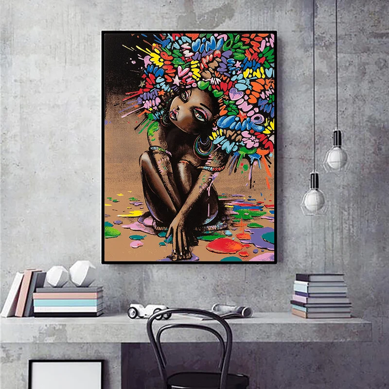 Граффити искусственная абстрактная девушка холст картина для фотографий АФРИКАНСКАЯ ДЕВУШКА домашний декор