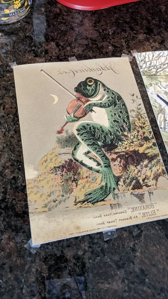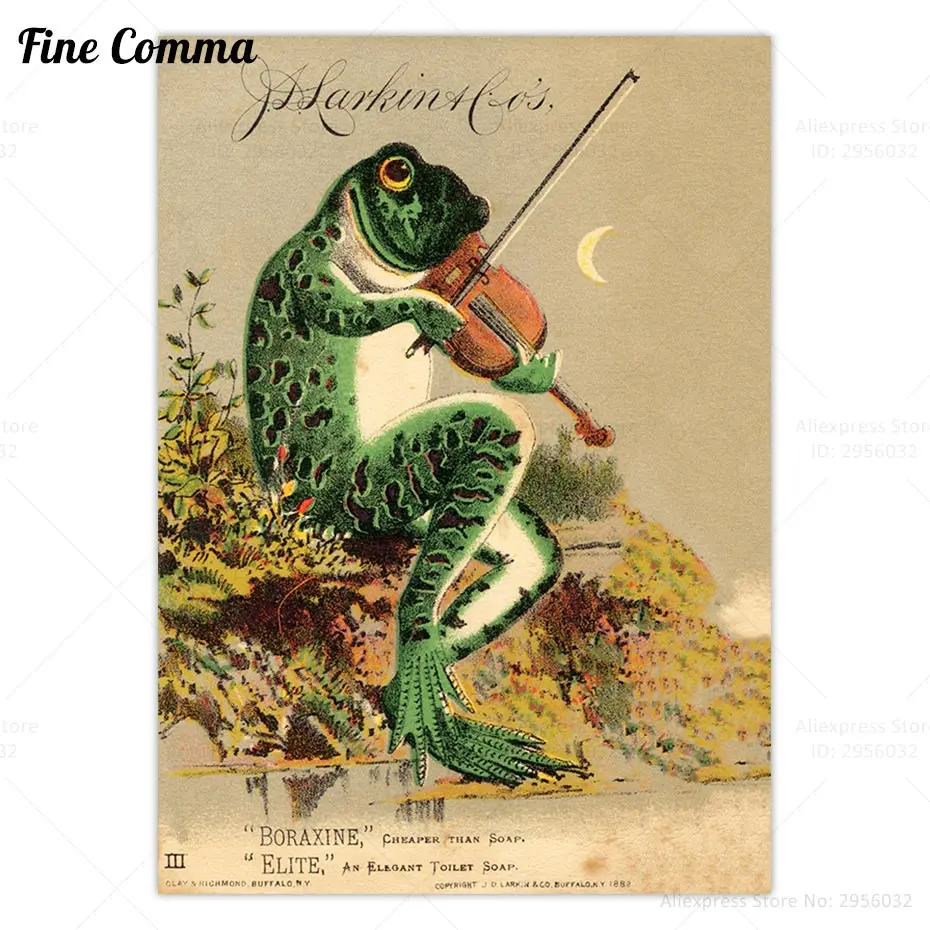ВИНТАЖНЫЙ ПЛАКАТ, античная лягушка, Художественная печать, викторианская реклама, настенное искусство в ванной, скрипка, холст, живопись, украшение для дома