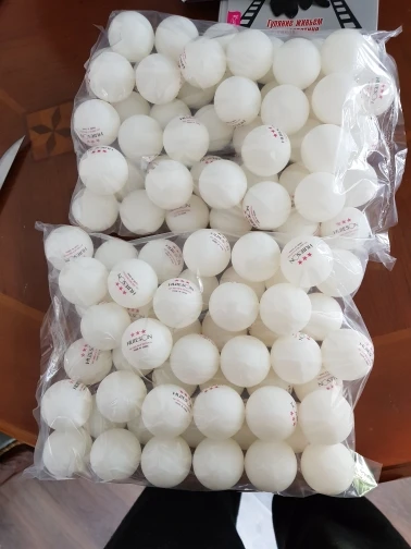 Посылка шла 2 месяца, упаковка надёжная,все мячи пришли без повреждений. Мячи белые (без серости и желтизны ). Поверхность у мячей матовая, хорошо сцепляется с резиной ракетки, отскок мяча от стола на уровне лучших мячей. Из трёх взвешенных мячей вес был 2,80 грамма у двух, а у одного - 2,77 грамма.Эксцентричности у мячей замечено не было. Для тренировки мячи идеальные, а для крупных соревнований нужны мячи утверждённые международной федерацией тенниса. При такой цене, я думаю, что это очень хороший выбор. Мячи брендовые в разы дороже, а по качеству превосходства - вопрос спорный. Продавец и его товар заслуживают оценки 5 звёзд, (а если принять во внимание цену, то все 10 звёзд).