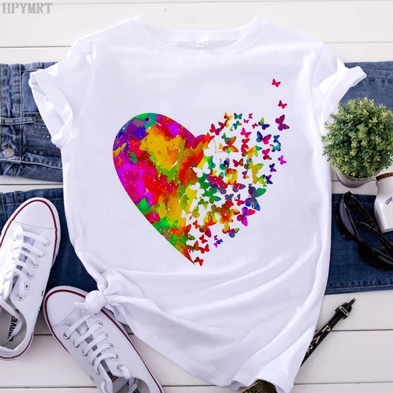 Женская футболка с принтом бабочки, топы, футболки с коротким рукав...