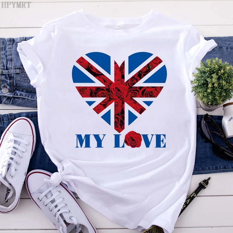 Женская футболка с принтом love, Повседневная футболка большого раз...
