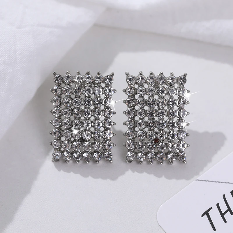 Женские квадратные серьги-гвоздики с кристаллами, Роскошные блестящие серьги золотистого и серебряного цвета, вечерние ювелирные украшения для свадьбы