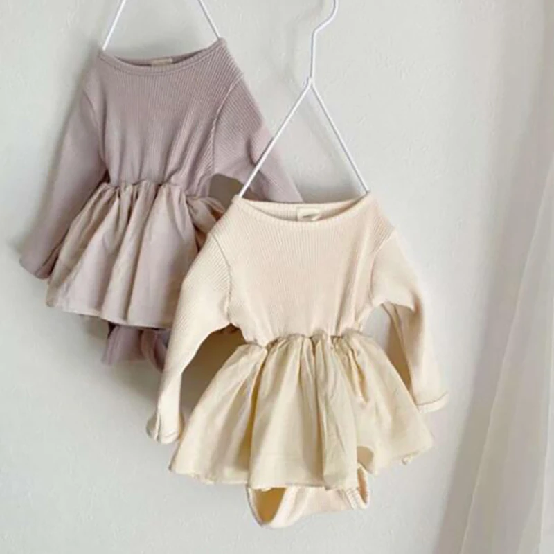 MILANCEL 2022 весенние Комбинезоны для маленьких девочек с оборками и юбкой, цельнокроеные Комбинезоны для маленьких девочек, детская одежда с длинным рукавом