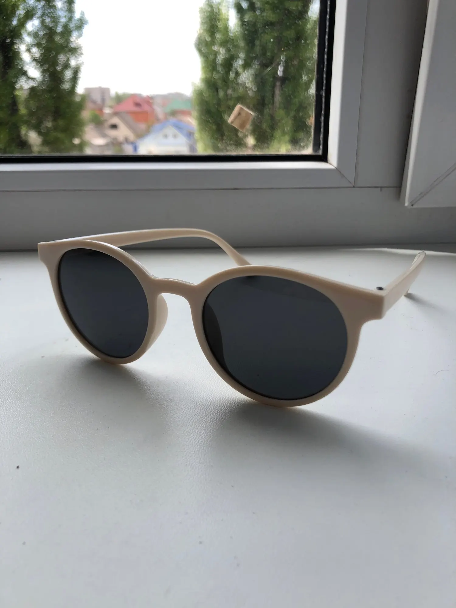 3 звезды за отвратительную упаковку,простой пакет с тонюсенькой пупыркой. обычно очки в воздушных пакетах приходят как минимум, или в коробке. В Беларусь с распродажи 11,11 приехали только в конце января, наверное, сами ногами шли.Сами очки норм,пластик. На поляризацию,заявленную продавцом,пока не проверяла. Оттенок милк ти наверное все же больше блондинкам подойдёт.