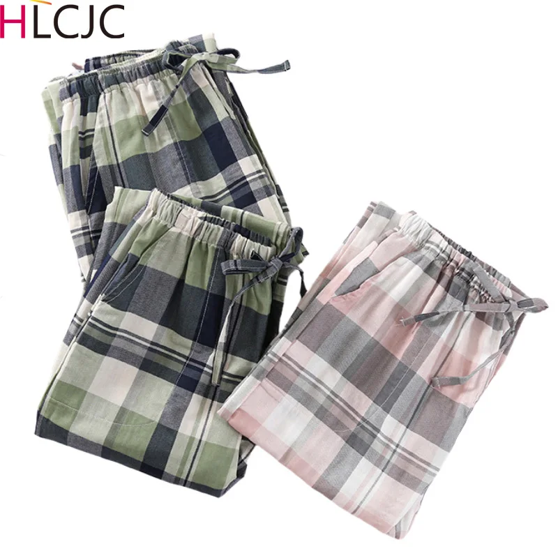 Японские клетчатые парные пижамные брюки для мужчин и женщин весна-...