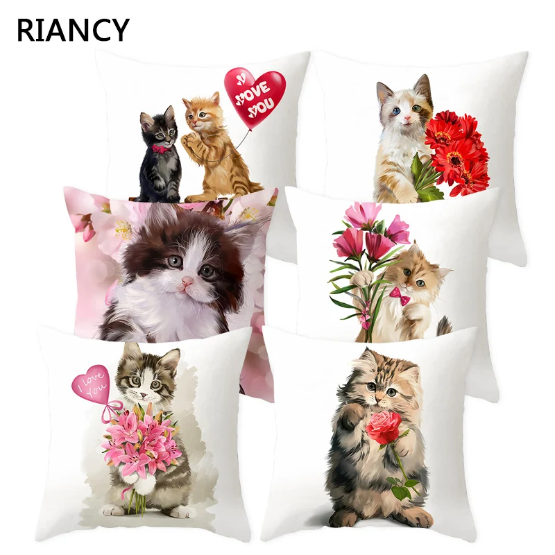 Наволочка с мультяшным котом и декоративная подушка для дивана, подушка из полиэстера 45*45, домашний декор, наволочка 40888