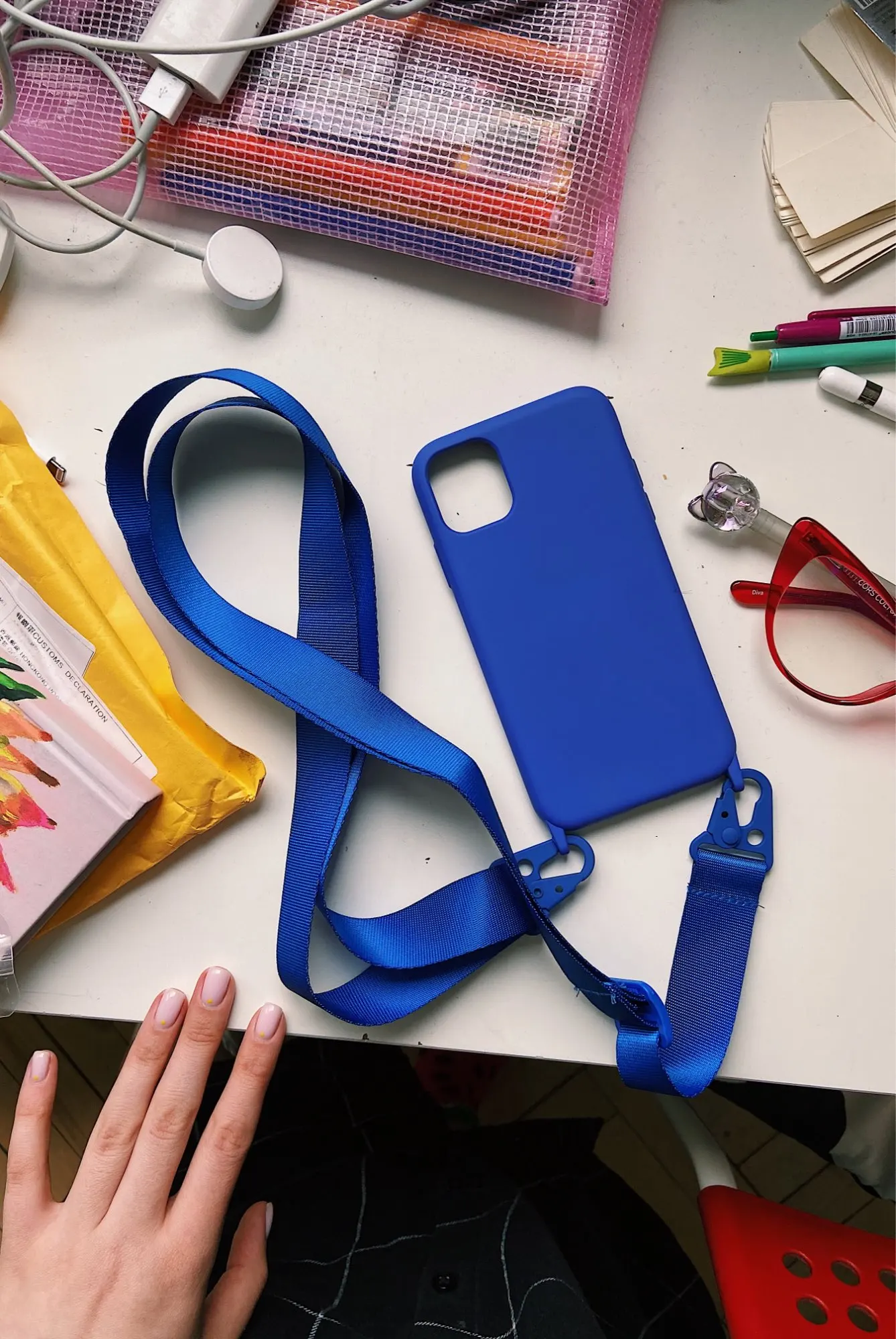 Чехол для iPhone 13, 12, 11 Pro, Xs Max, силиконовый ремешок через плечо, ожерелье, с цветным ремешком
