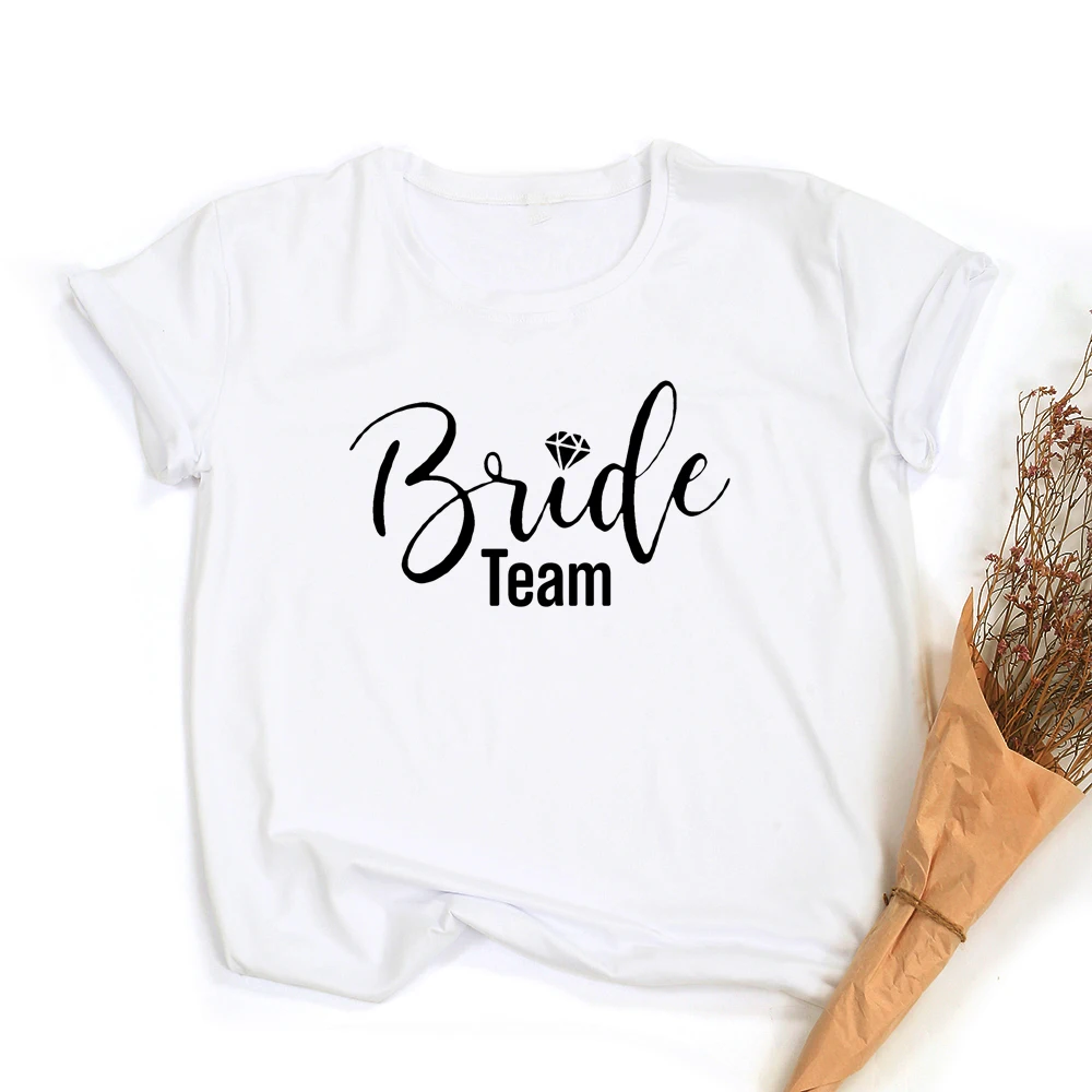 1 шт. невесты с принтами "Отряд команда пара девичник невесты вечерние женские летние хипстерская футболка с коротким рукавом топы, футболки для девочек, Camisetas Mujer