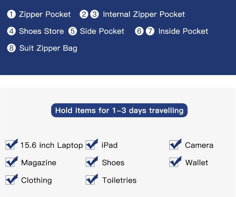 Идея хорошая, но реализация не очень. Сложно застёгивать, молния расходится при складывании сумки. Если часто возить костюм, и пользоваться в качестве портпледа, не подойдёт. Немного огорчён. Сумка шла в Ростов больше месяца...