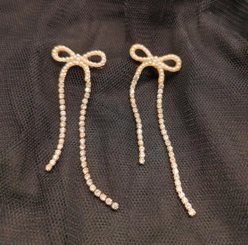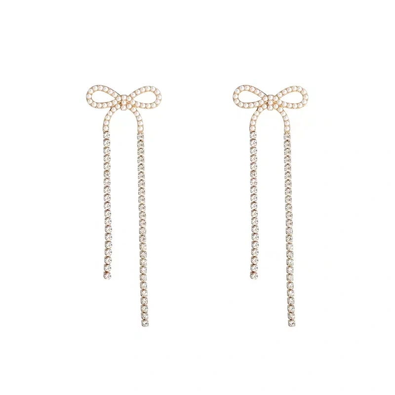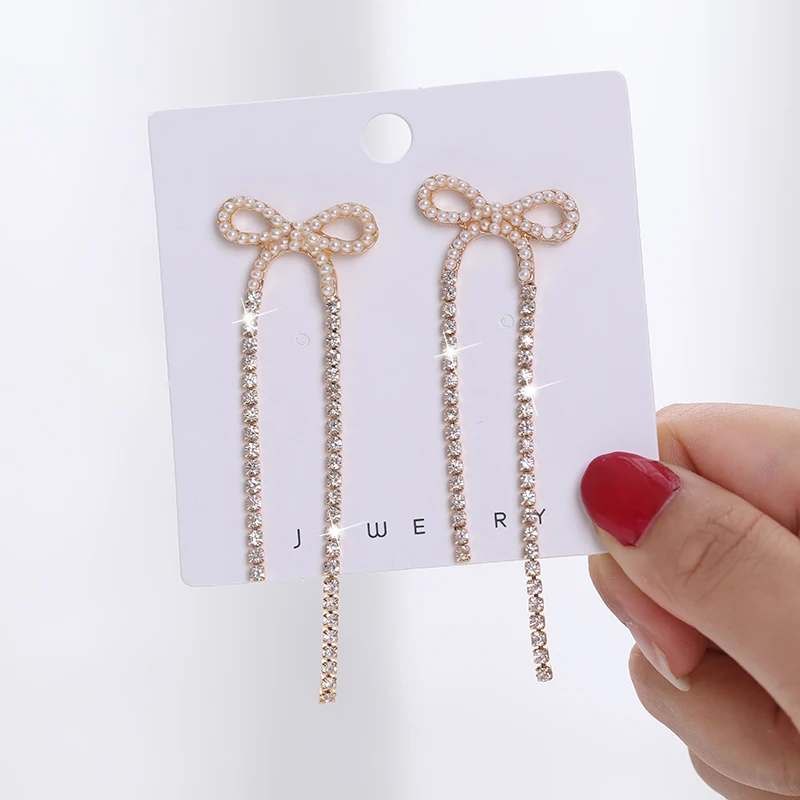 Женские серьги с искусственным жемчугом, корейские золотые серьги с кристаллами, серьги с бантами