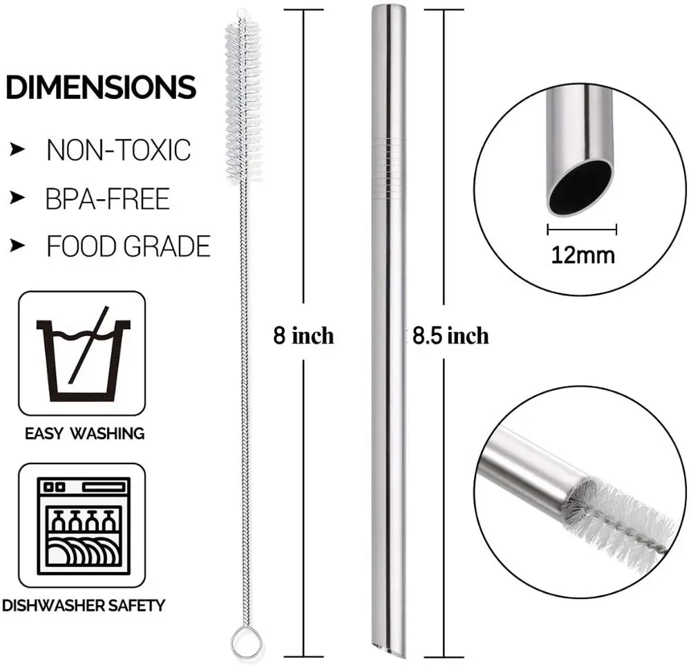 Трубочки для напитков с угловым наконечником, 12 мм, из нержавеющей стали 304
