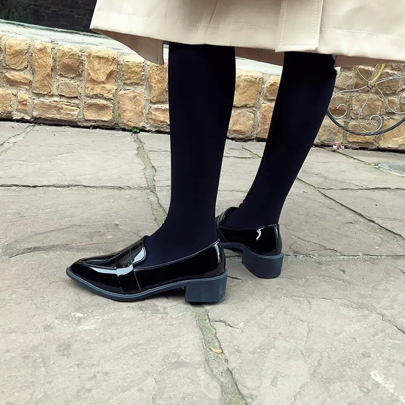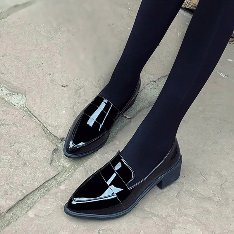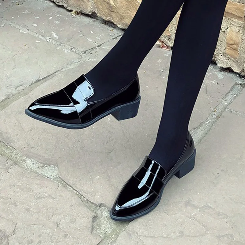 Туфли-оксфорды женские, из лакированной кожи, черные, с острым носком