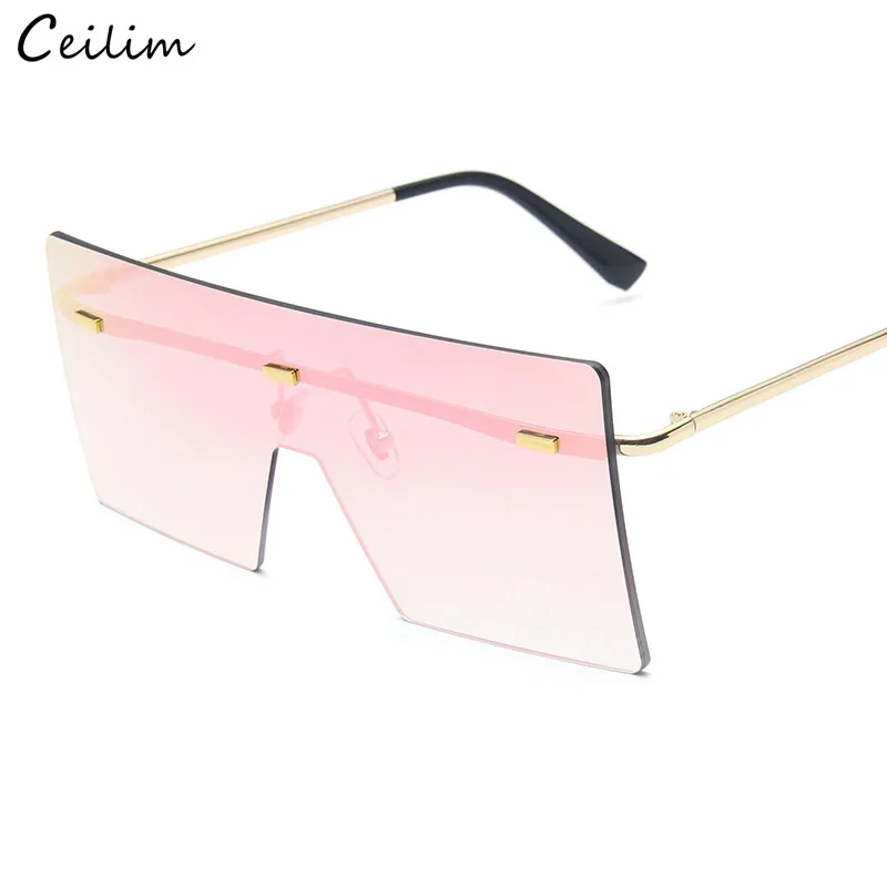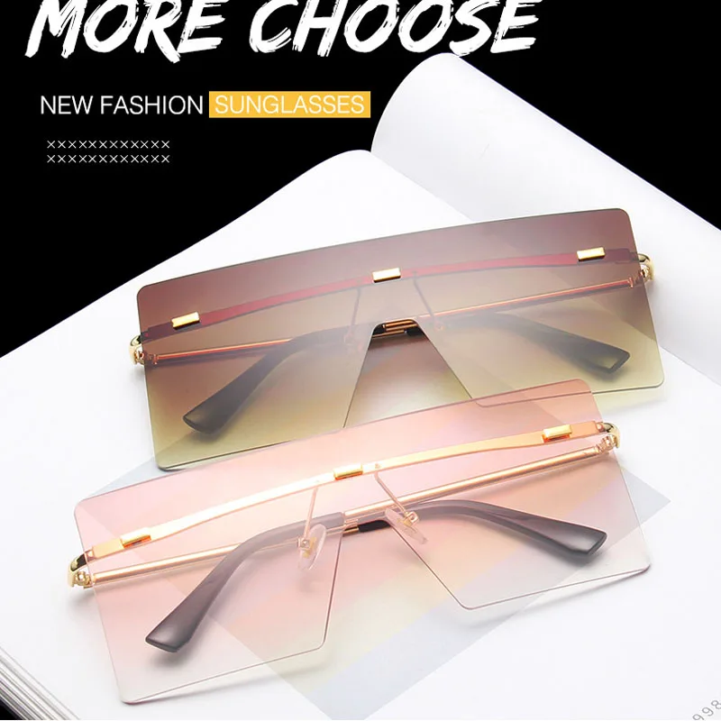 Женские солнцезащитные очки большого размера, квадратные очки без оправы, винтажные градиентные солнцезащитные очки в ретро стиле, новинка 2020
