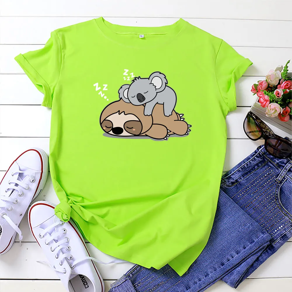 Футболка женская из размера плюс-S-5XL хлопка, с принтом ленивца и ...