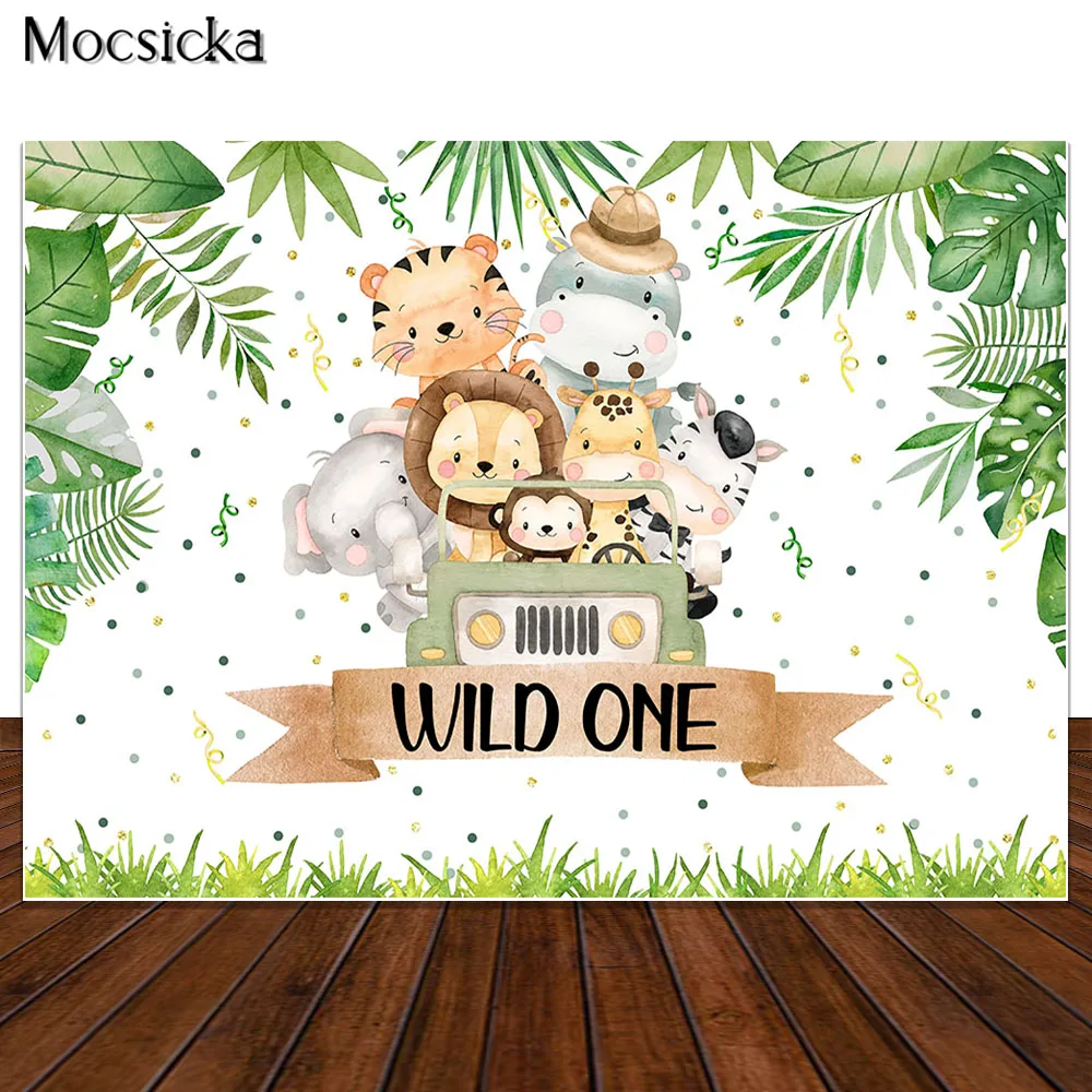 Wild One Baby Shower Backdrop Woodlan Animal вечерние фоны для фотосъемки с изображением слона льва Детские Вечерние Декорации