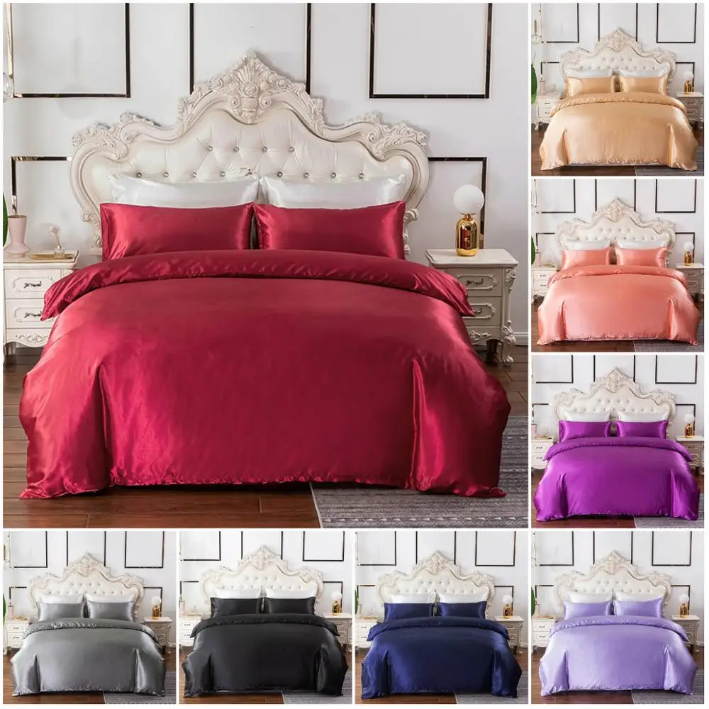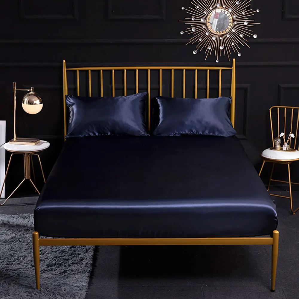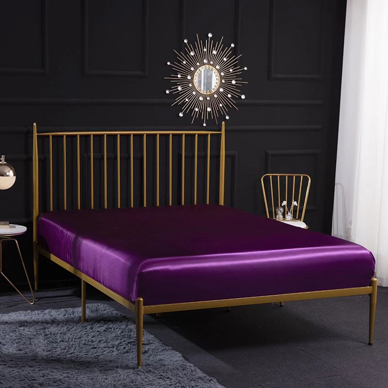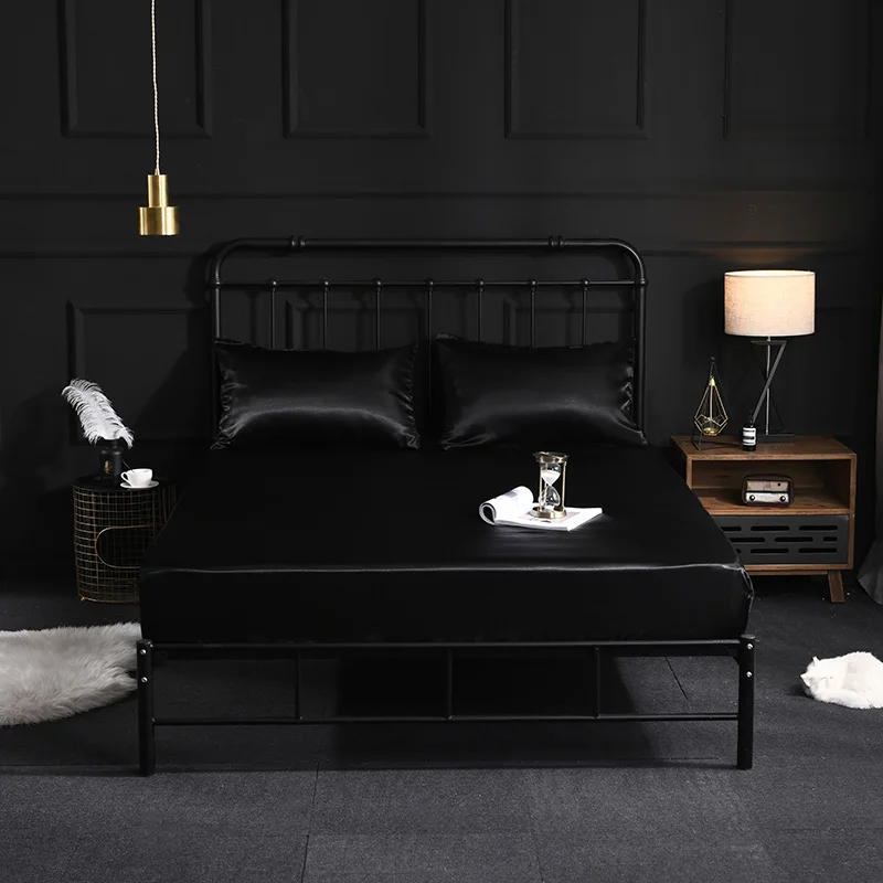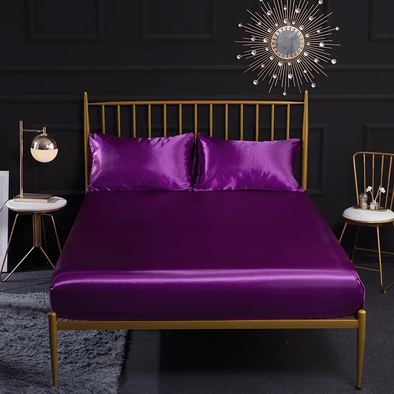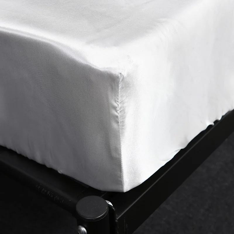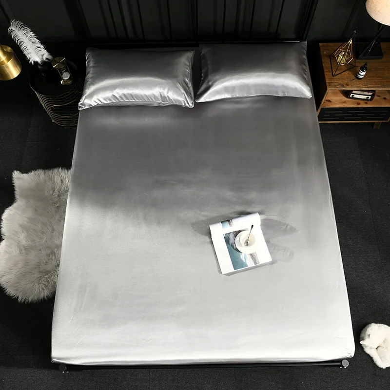 Натяжная простыня на матрас, Шелковый атласный чехол для кровати, однотонный матрас, Королевский размер, Белый Серый фиолетовый розовый