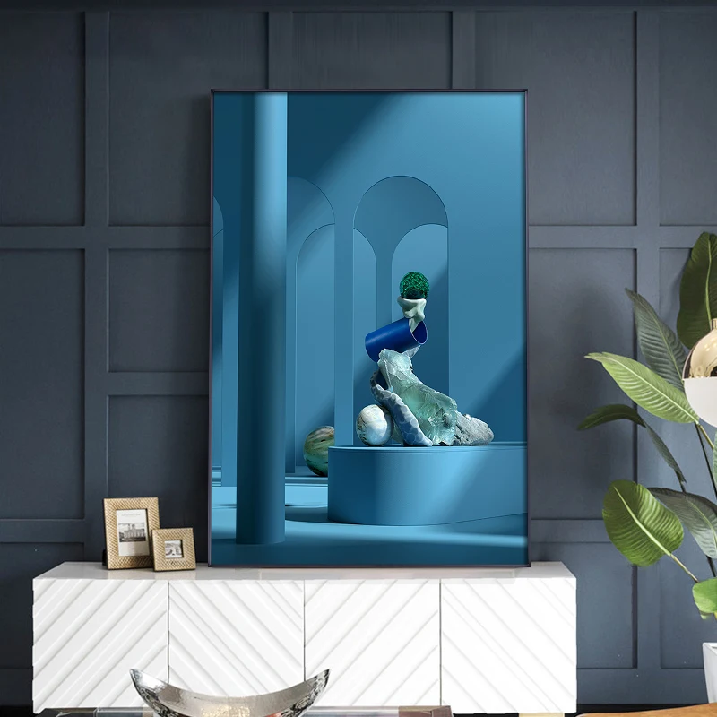 Абстрактный синий белый пейзаж Холст Плакаты печать золотые настенн...