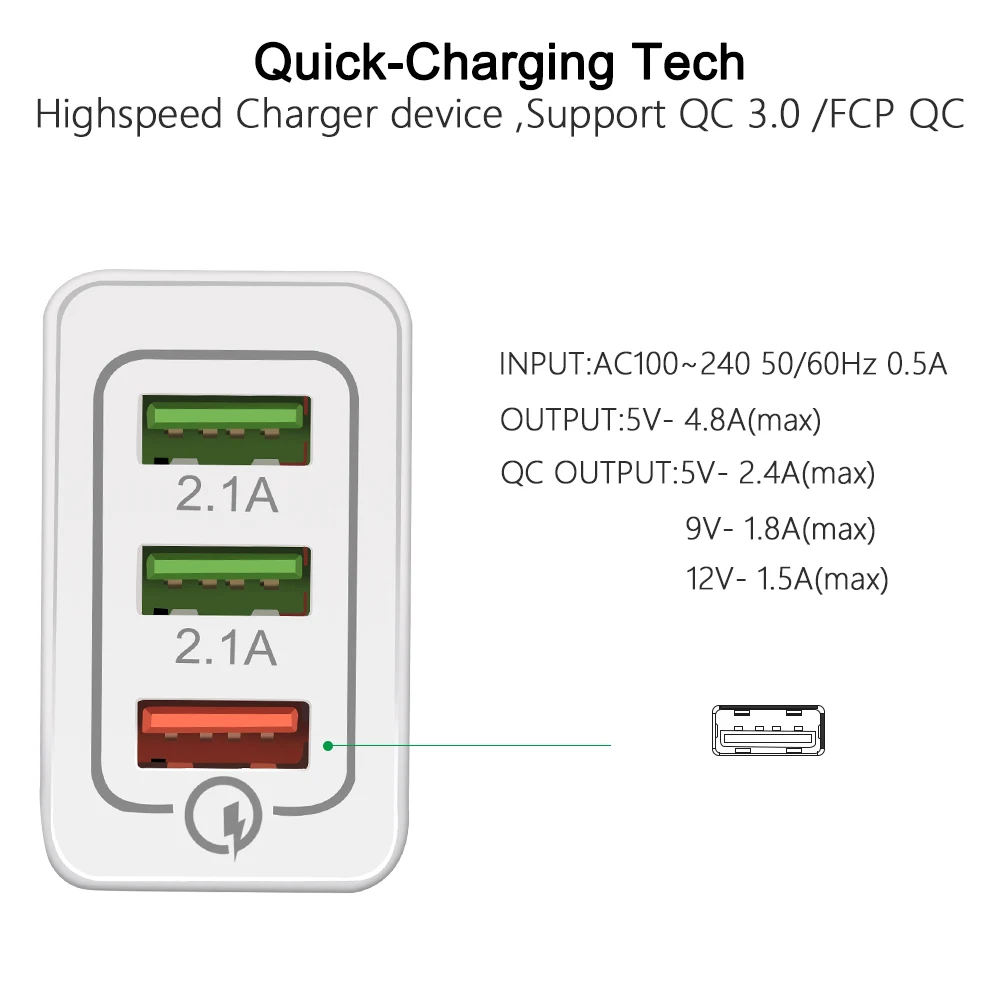 3 USB зарядное устройство Быстрая зарядка 3,0 для iPhone X 8 7 iPad...