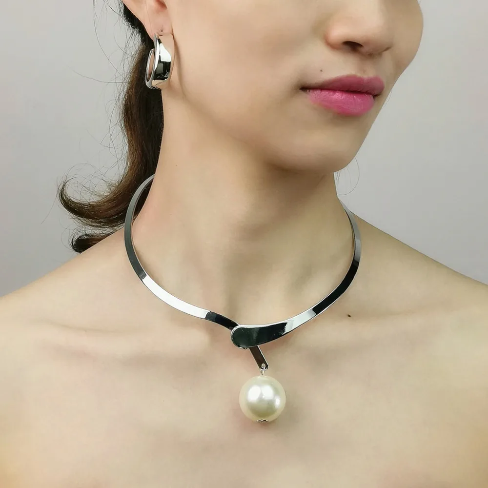 Ожерелье-чокер женское из металлического сплава, большой кулон с имитацией жемчуга, массивное Ювелирное Украшение для девушек UKMOC