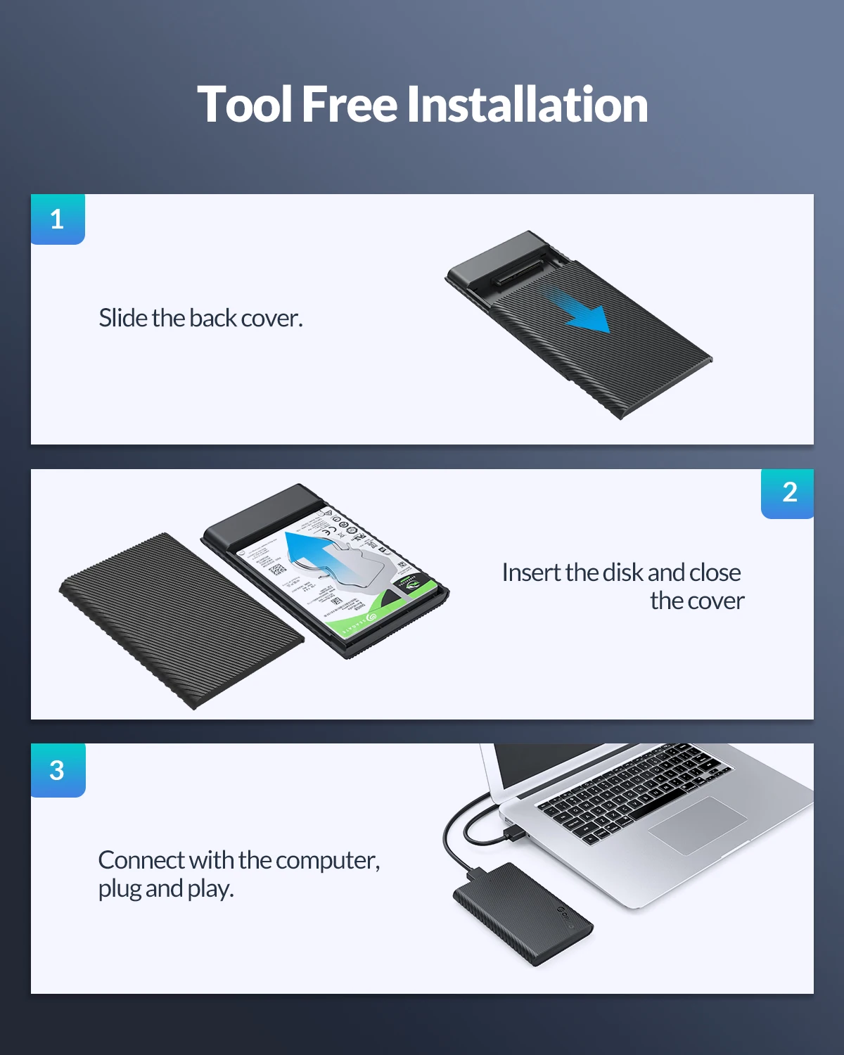 Корпус для внешнего жесткого диска ORICO, SATA на USB 3,0, 5 Гбитс, 4 ТБ, совместим с 2,5 дюймовым жестким диском 7 9,5 мм