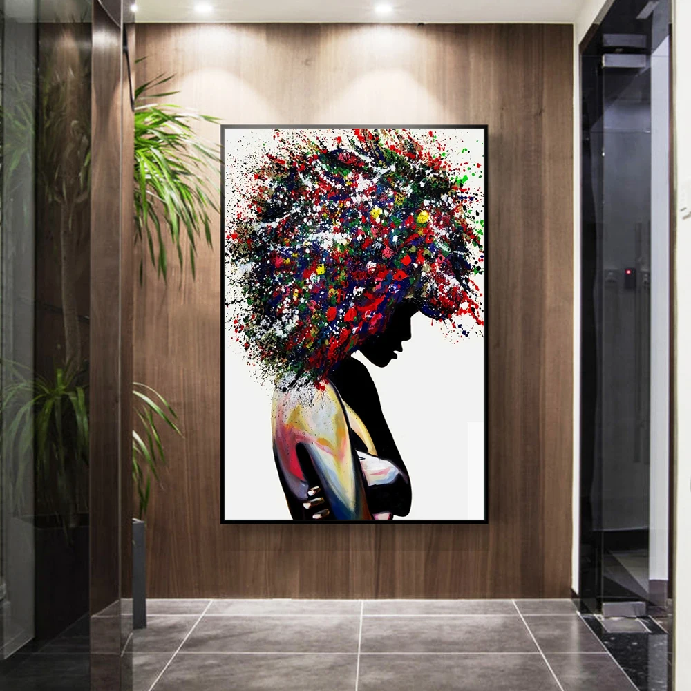 Граффити искусство черной женщины холст настенные картины художественные плакаты и принты Африканская женщина современное искусство картина домашний декор стен