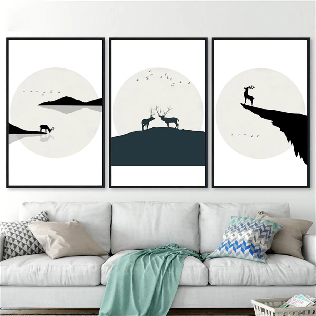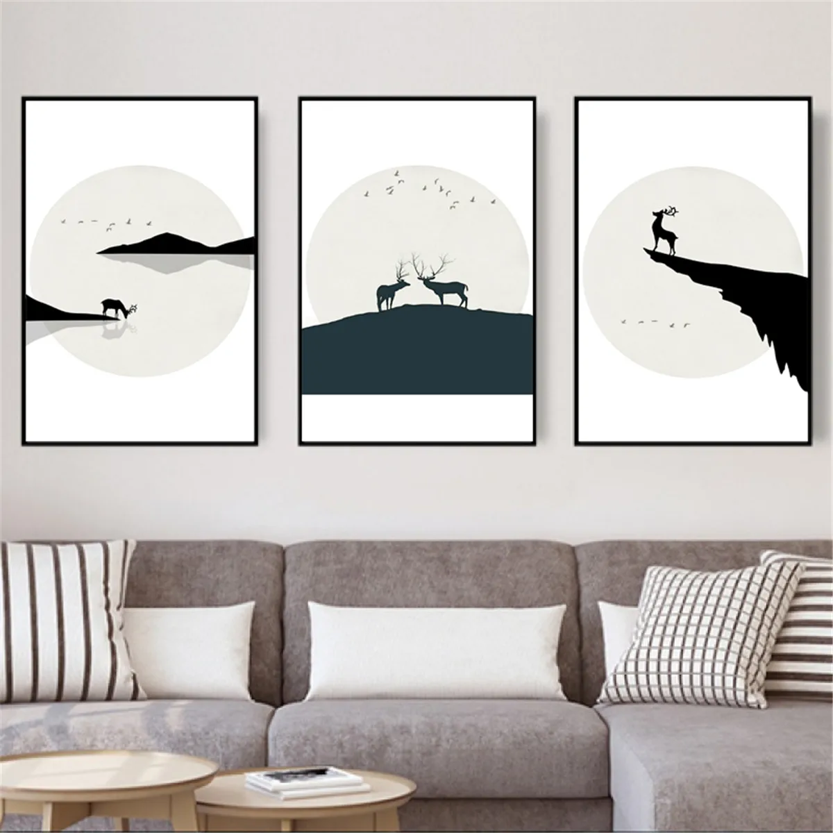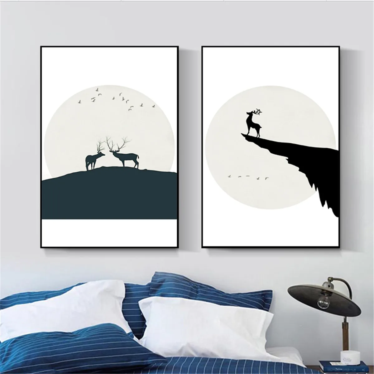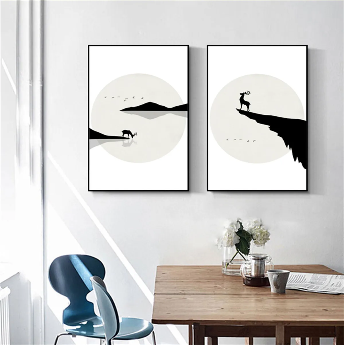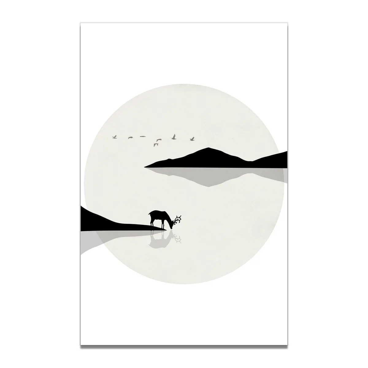 Лося под луной горный плакат с озером Печать холст Картина Wall Art Гостиная украшение дома