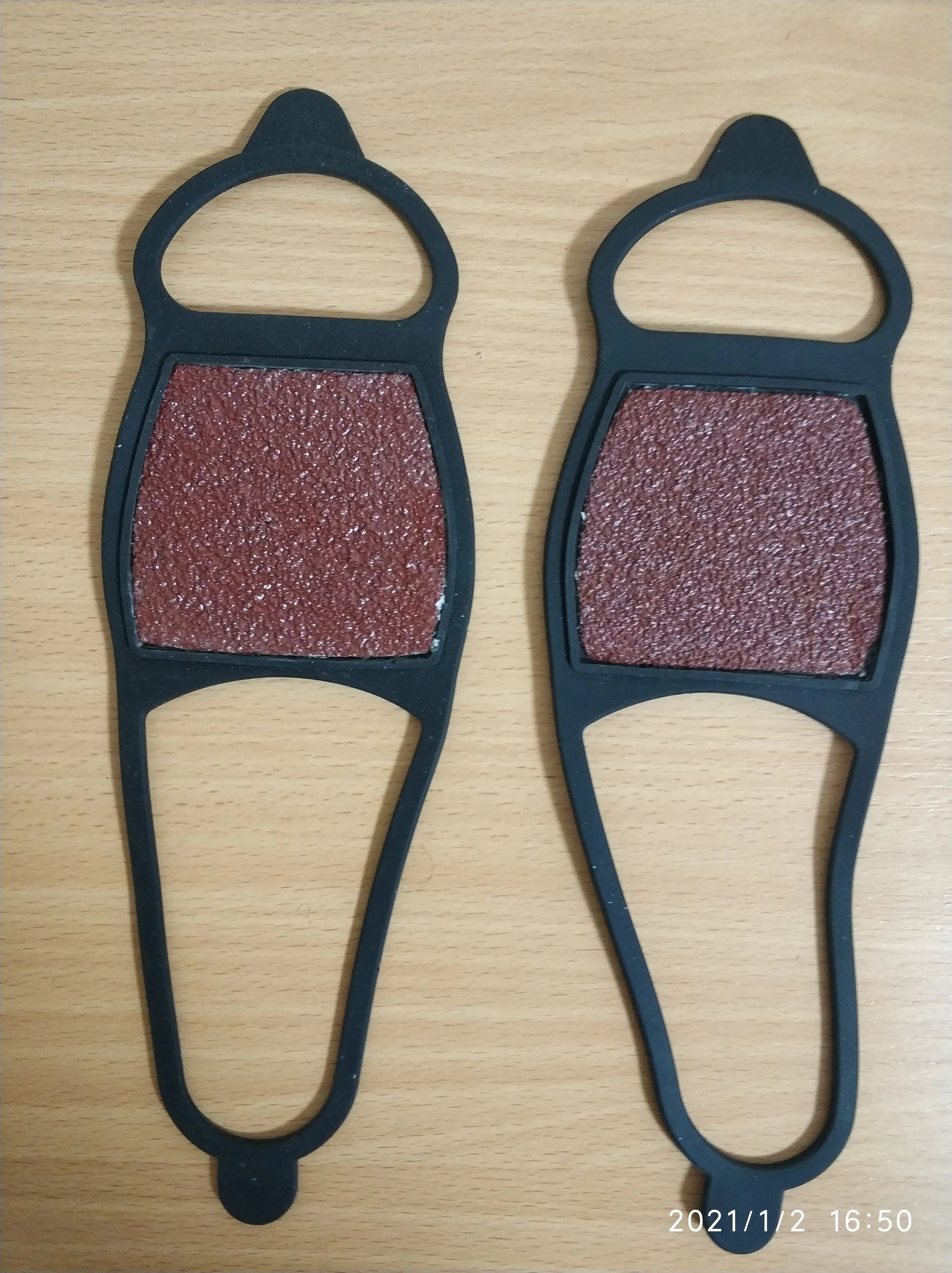 Мягкая резинка, благодаря которой хорошо держатся на обуви. На льду на них, правда, всё равно скользко, с шипами несколько выигрышней. Доставка быстрая.