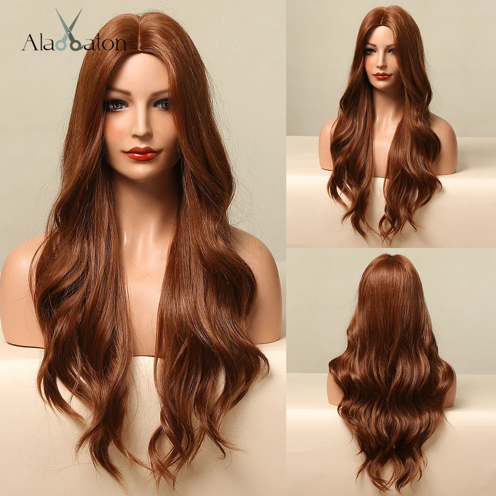 Длинные натуральные волнистые синтетические парики LOUIS FERRE, мед...
