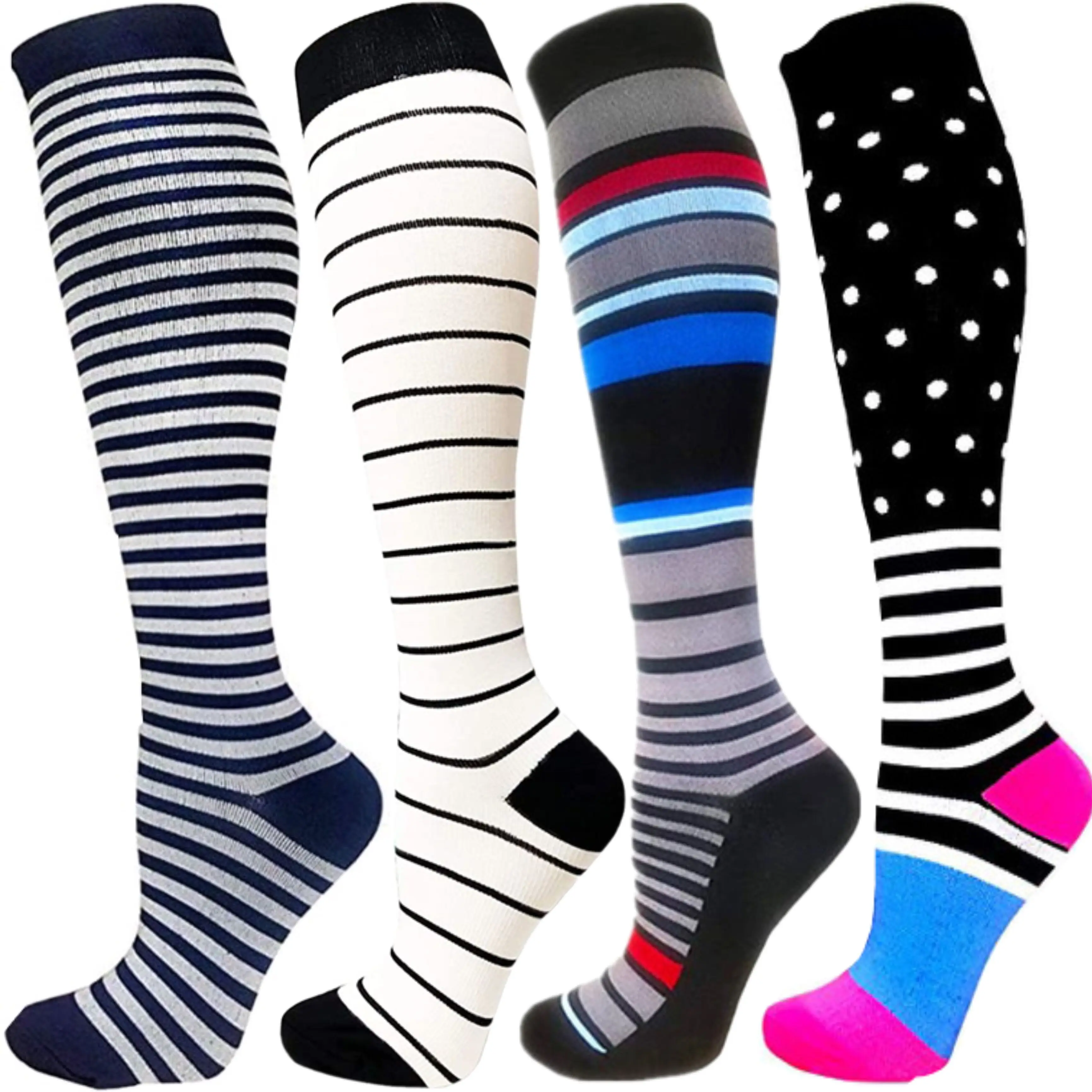 Компрессионные носки в полоску, цветные точки, длинные носки для бе...