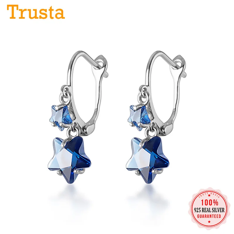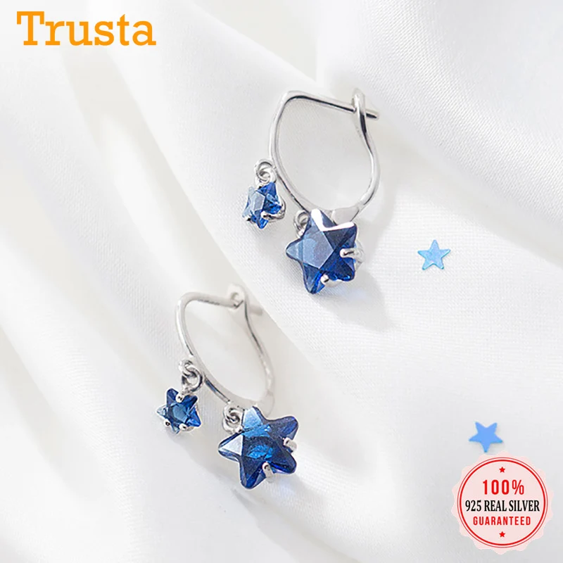 Женские серьги-кольца trustdave, свадебные серьги из стерлингового серебра 925 пробы со сверкающим голубым кубическим цирконием, ювелирное изделие DA1144, 925