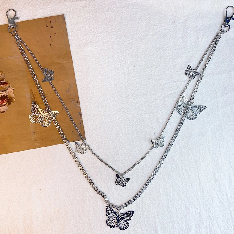 Брелок для ключей Женский, шикарный двухслойный браслет в стиле панк, байкер, джинсы, Бабочка, брюки, цепь для брюк, Модная бижутерия