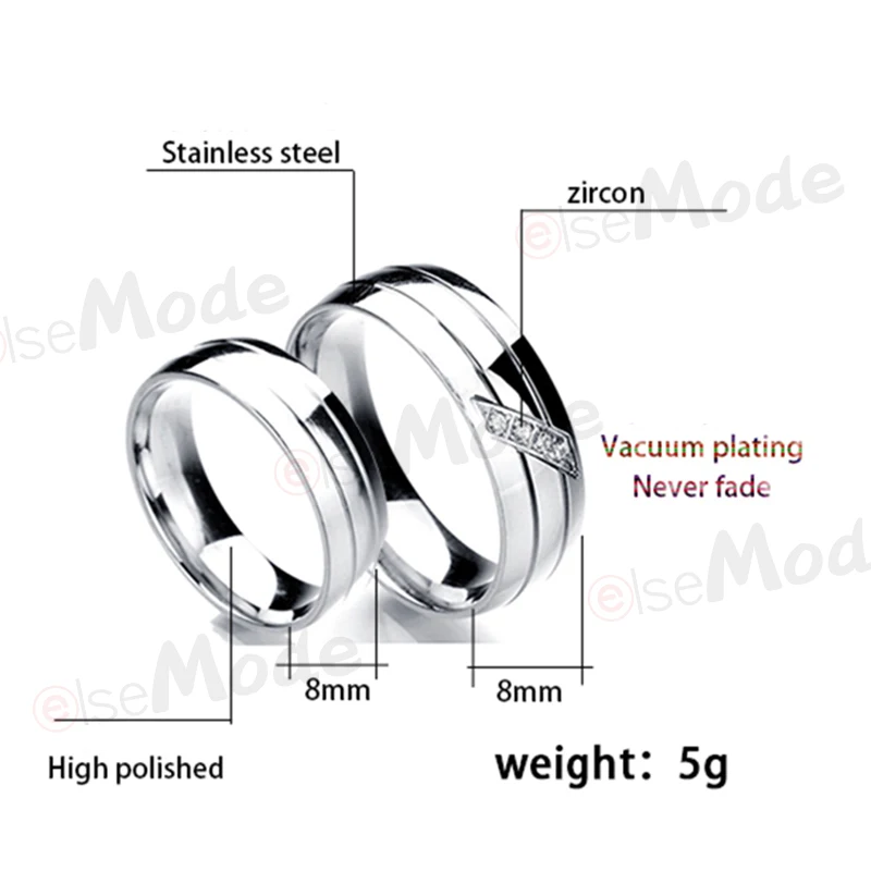 ELSEMODE Новая мода 316L нержавеющая сталь пара кольцо с кубическим цирконием свадьба кольца для возлюбленной ювелирные изделия подарок