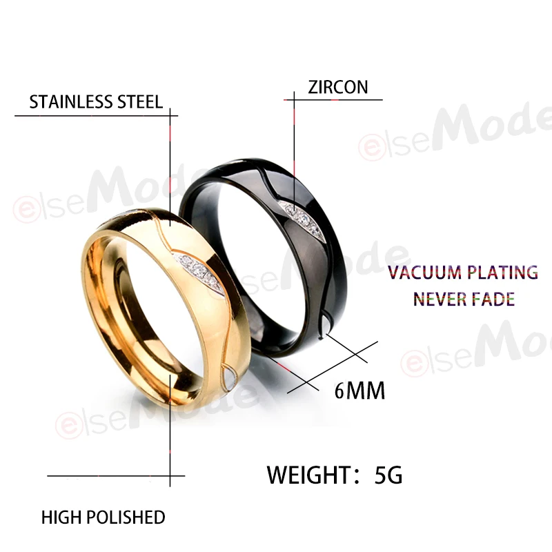 ELSEMODE, новое модное парное кольцо из нержавеющей стали 316L с кубическим цирконием, свадебное украшение кольца для возлюбленной, подарок