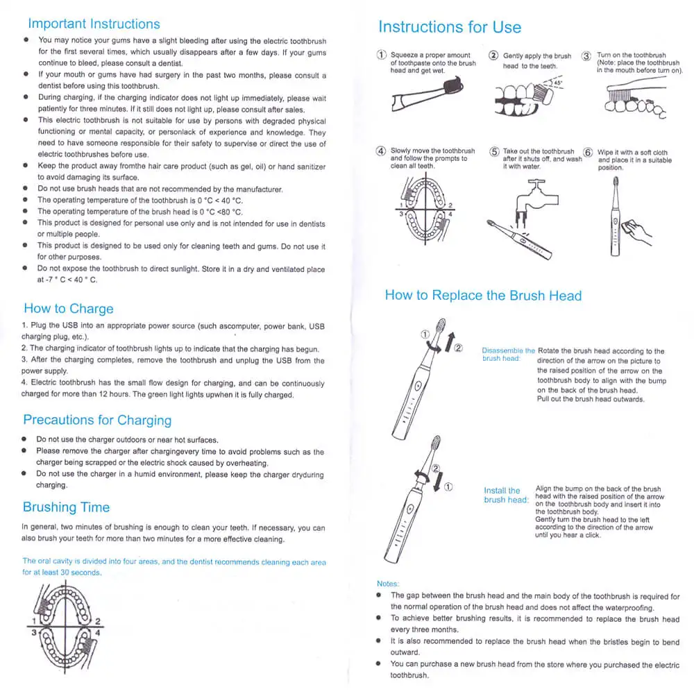 【 1 】 мощная очистка до 41000 ударов в минуту 【 2 】 3 часа зарядки для MINIUM 15 дней использования 【 3 】 мягко и эффективно достигает глубины между зубами и вдоль линии 【 4 】 2 минут автоматический таймер, 30 секунд с интервалом, чтобы обеспечить тщательно чистки в четырех квадрантах 【 5 】 IPX-7 водонепроницаемый для использования в ванной и душе 【 6 】 длинная батарея Ilife, поддерживается зарядкой через USB, безопасная и Легкая Автоматическая отключка после полной зарядки, совместима с любым источником питания 【 7 】 зубные щетинки сделаны из нейлона Dupont, подходят для топографии зубов для очистки десен и труднодоступных областей Материал: ABS / TPE / DuPont нейлоновая щетина Режим зарядки: 5 В-USB зарядка Напряжение: 3,7 V Мощность: 0,5 W Посылка включает: Электрическая зубная щетка-1 шт. 4 | 8 x Оригинальная головка щетки Руководство пользователя (на английском языке)-1 шт. 1 х USB кабель для зарядки Пылезащитный чехол-1 шт. 1 x Красивая коробка