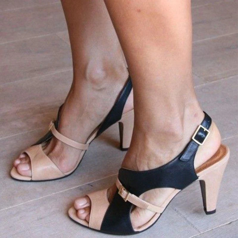Босоножки женские на массивном каблуке, элегантная кожаная обувь с ...