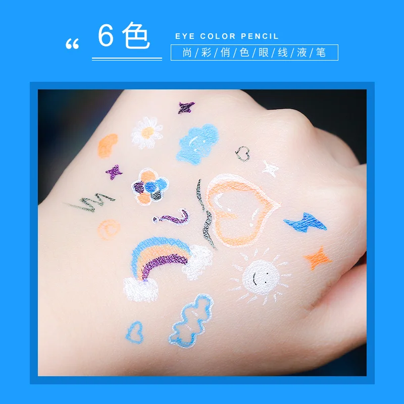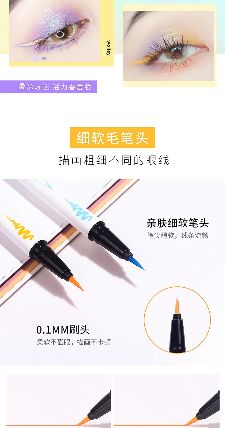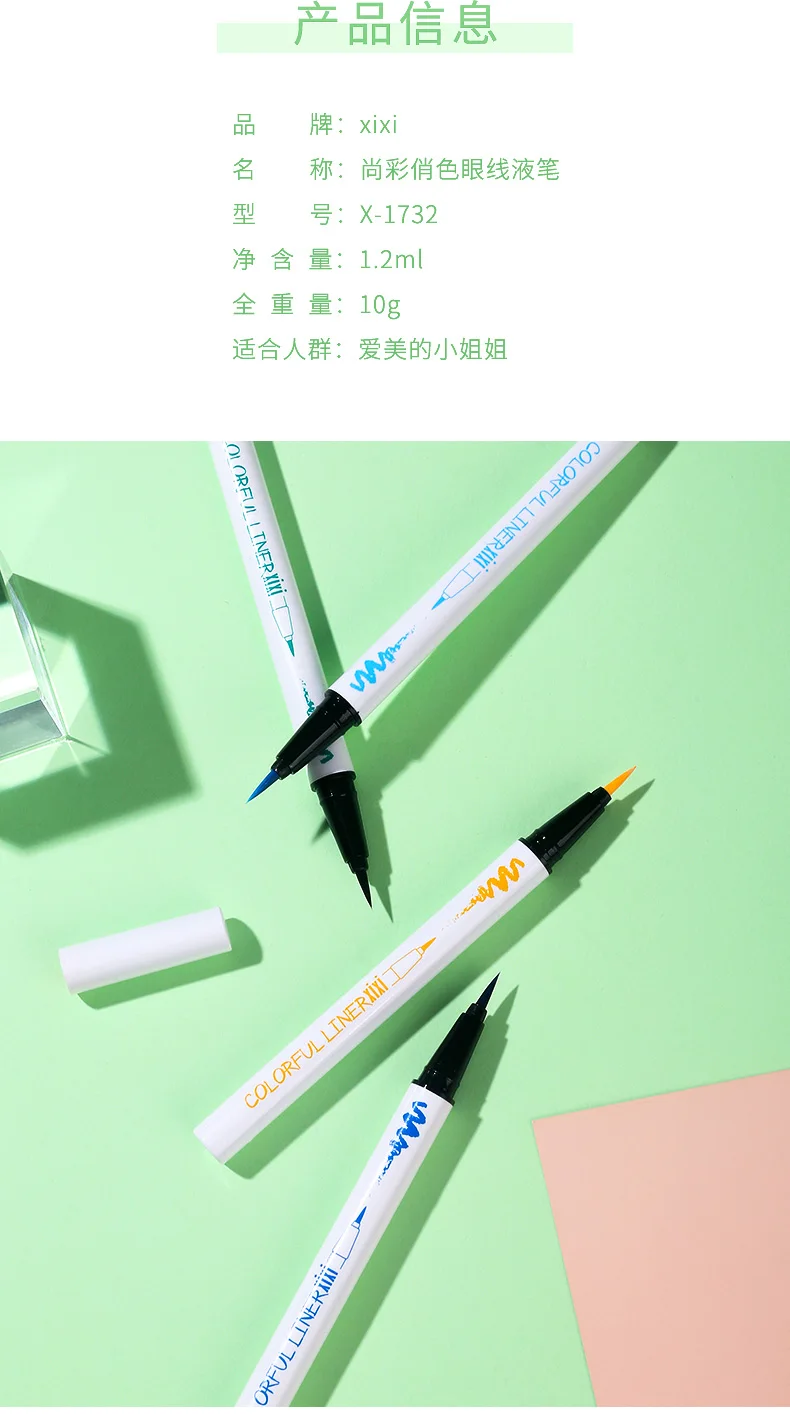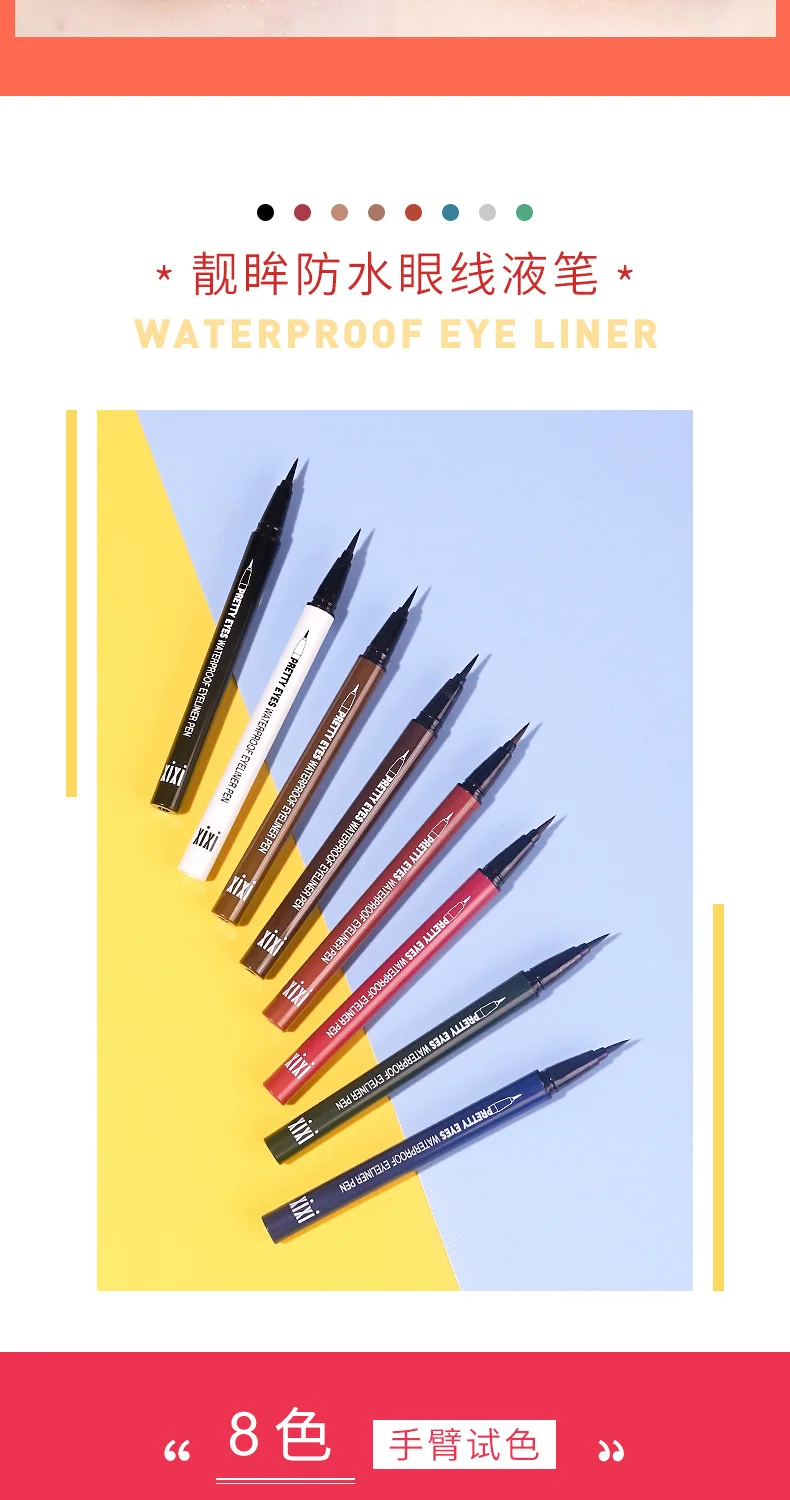 Радужная подводка для глаз Xixi, карандаш для глаз, симпатичный белый, красный, желтый, коричневый, фиолетовый, белый, стойкий тонкий Матовый жидкий карандаш для глаз AC211