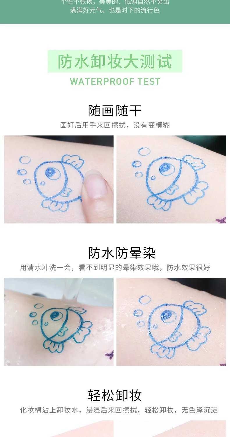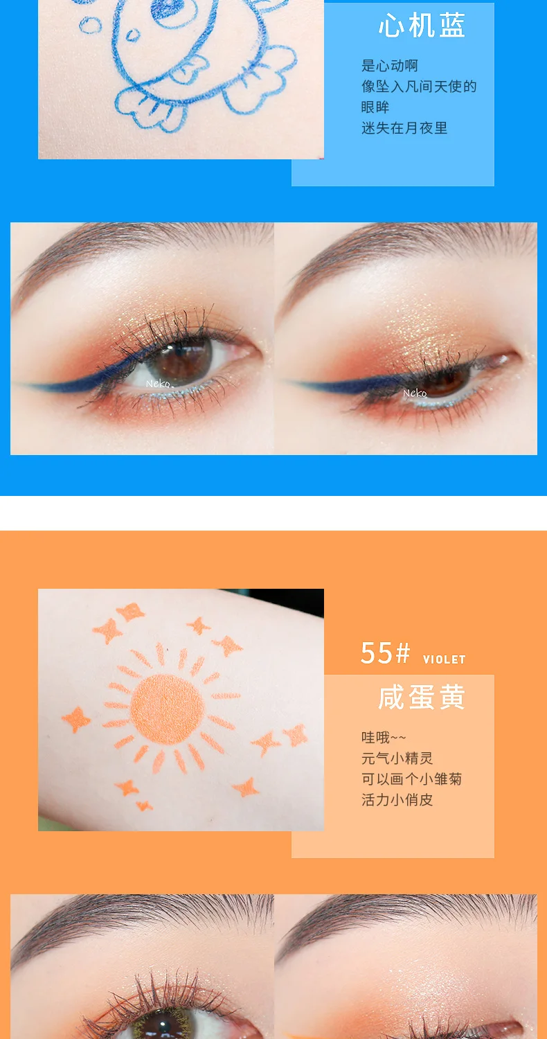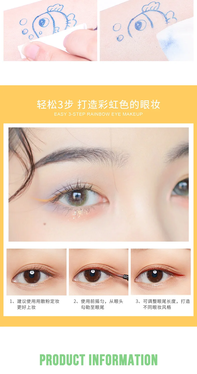 Радужная подводка для глаз Xixi, карандаш для глаз, симпатичный белый, красный, желтый, коричневый, фиолетовый, белый, стойкий тонкий Матовый жидкий карандаш для глаз AC211