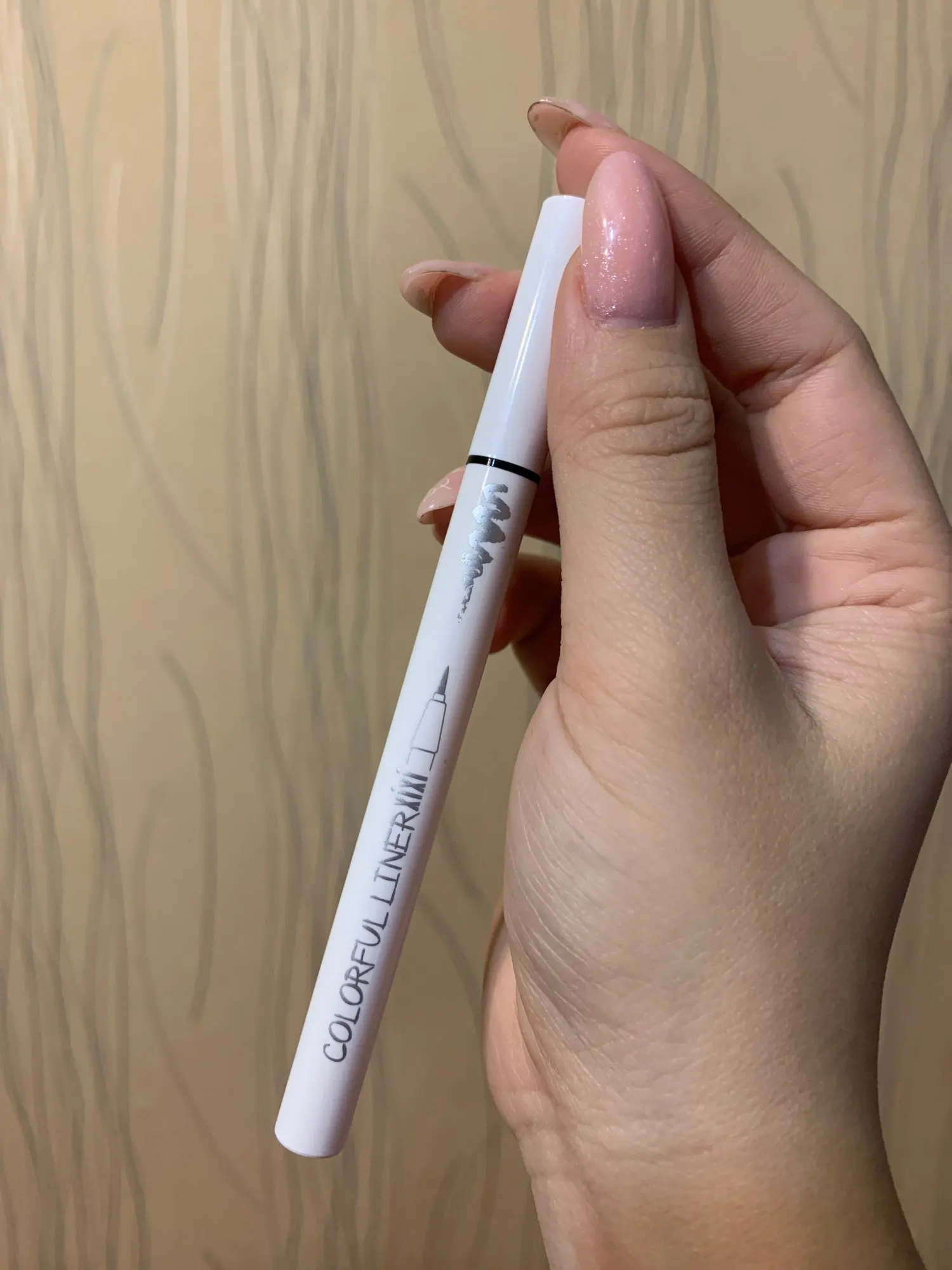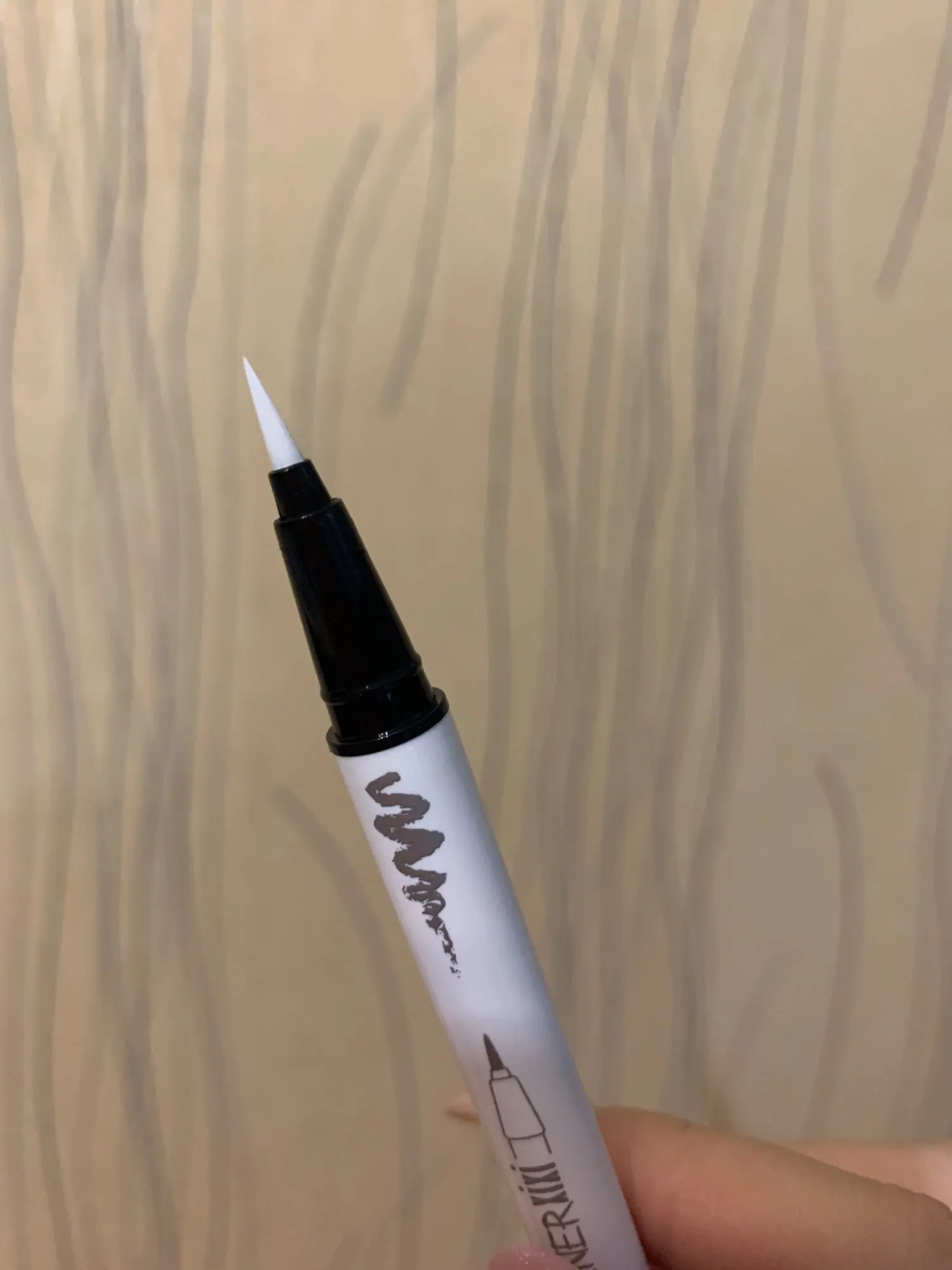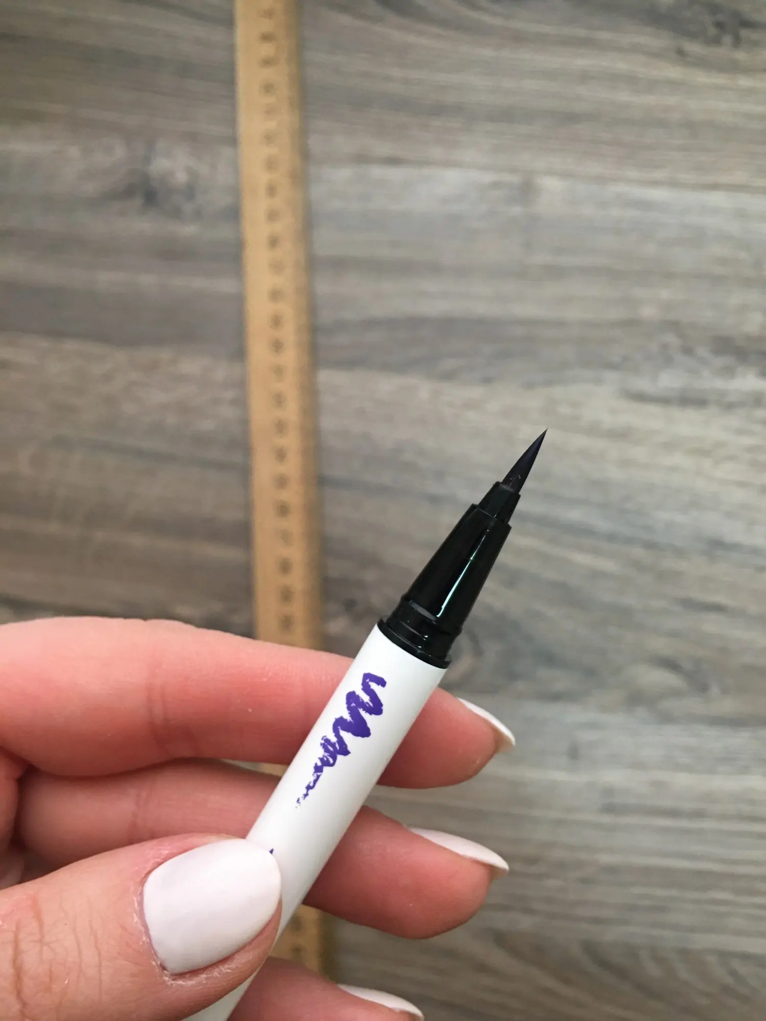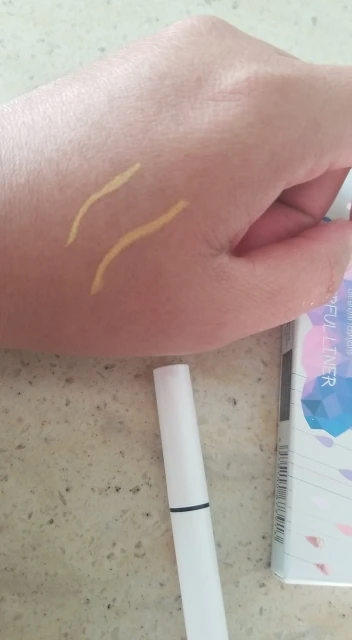Это красивая белая подводка для глаз. Единственное, что вы не можете на самом деле вернуться через линию, которую вы нарисовали, иначе продукт натирает или немного приподнимает. В целом это очень хорошо, но вам, возможно, придется немного потренироваться, чтобы получить линейку в один хороший ход...