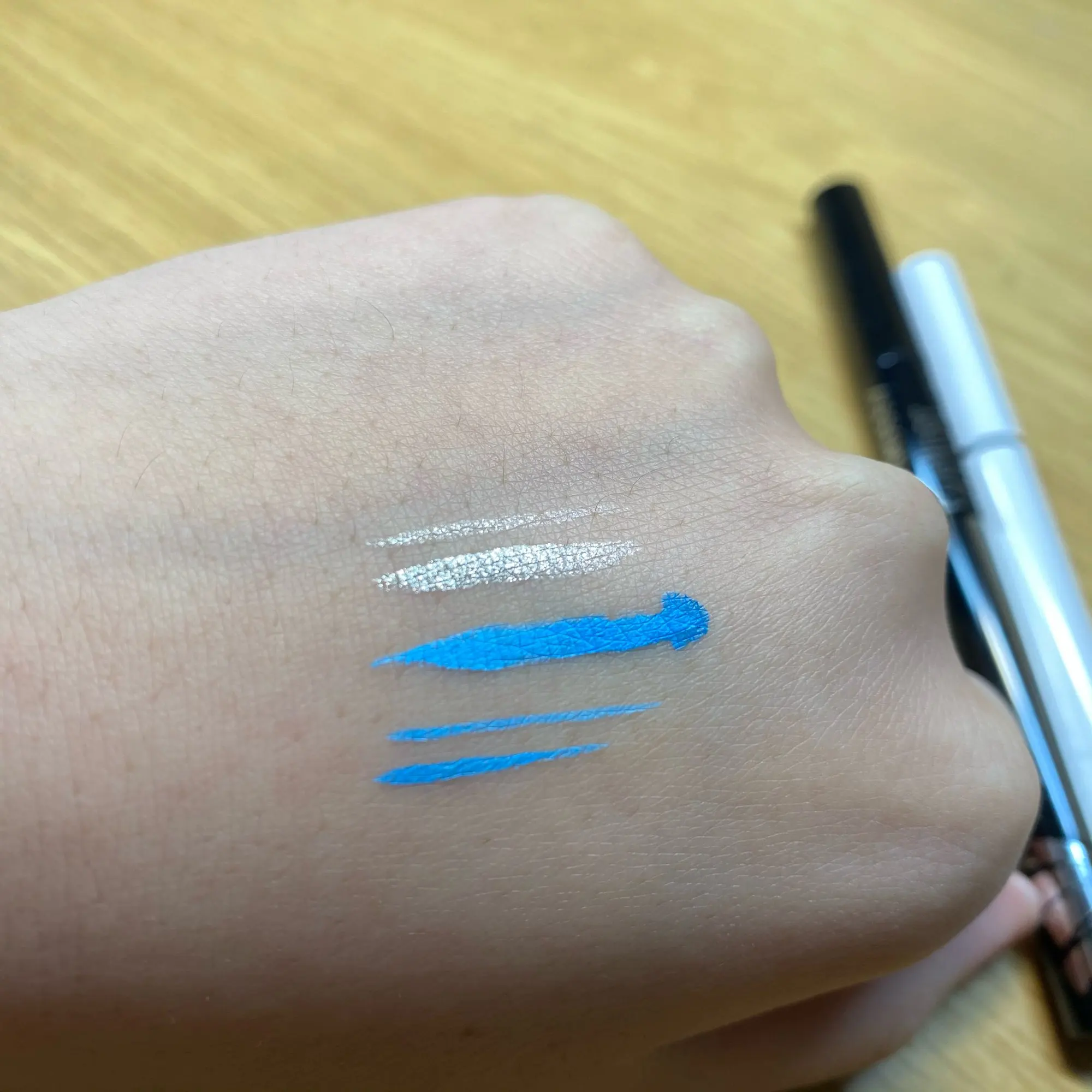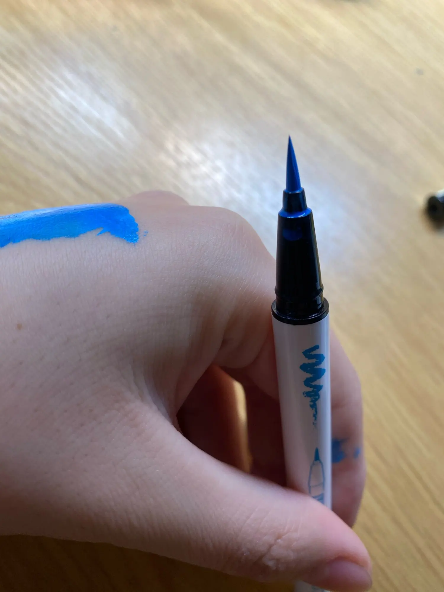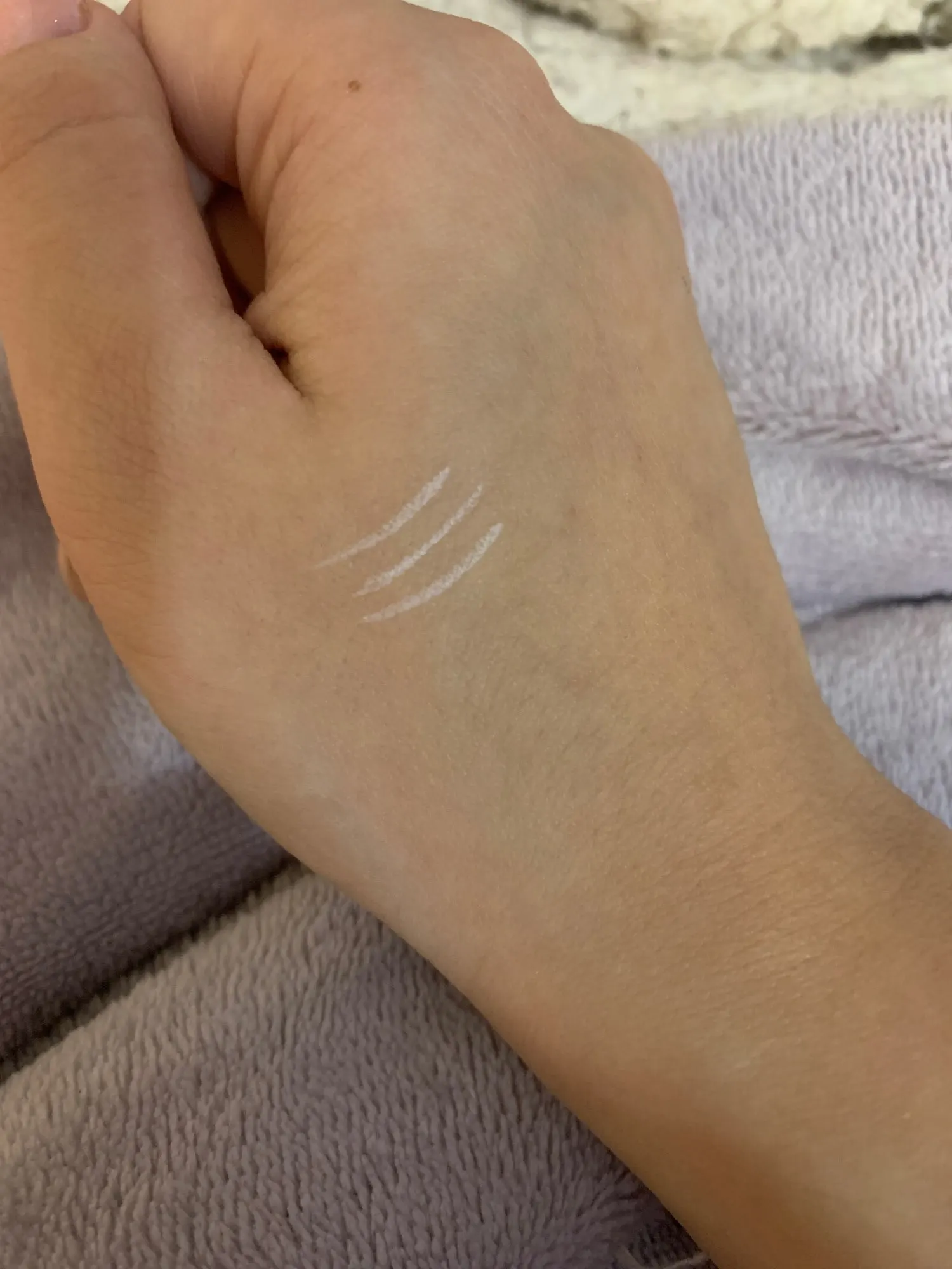 Это красивая белая подводка для глаз. Единственное, что вы не можете на самом деле вернуться через линию, которую вы нарисовали, иначе продукт натирает или немного приподнимает. В целом это очень хорошо, но вам, возможно, придется немного потренироваться, чтобы получить линейку в один хороший ход...